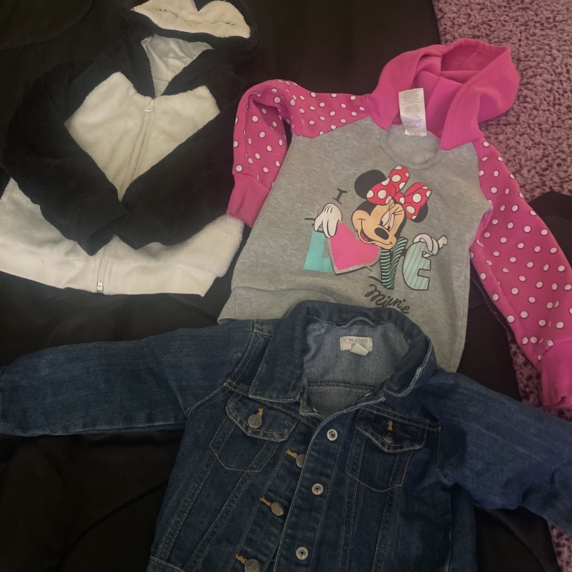 Size 3t children’s place jackets and one Minnie Mouse one leather one