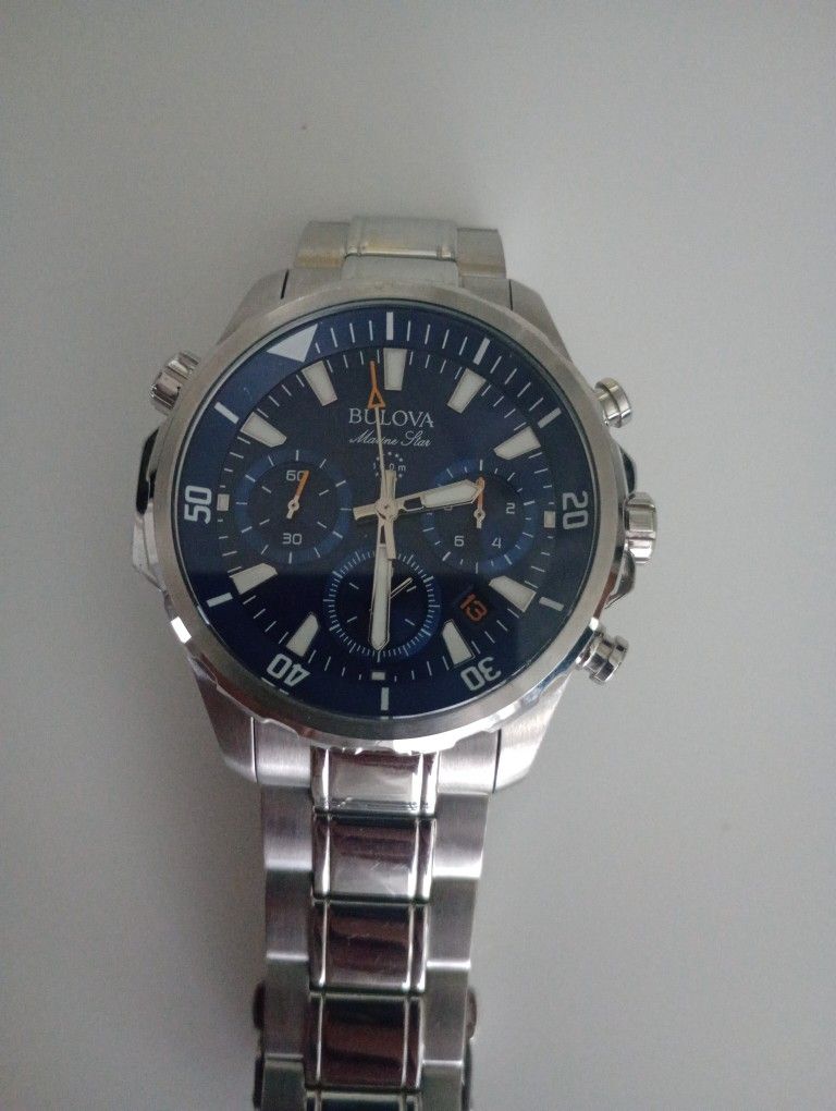 Bulova Marine Star watch SS Blue dial water proof 20 to 50 meters very nice watch needs battery.