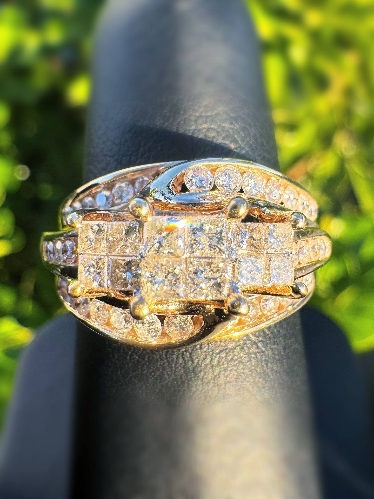 10k yellow gold 1CTW Natural Diamond Princess & round cut Channel-Setting Engagement Ring sz6