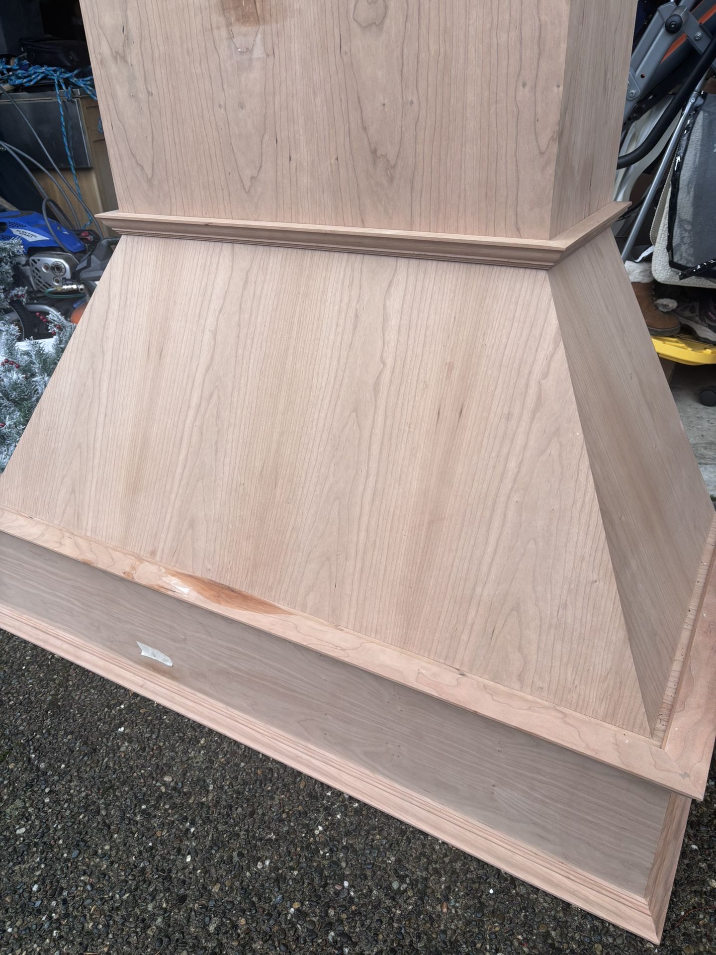 I have two wood hood ranges, Oak wood hood for kitchen hood range, inside dementions 46-1/2 inches wide, height is 42 inches tall never stained or painted. I have a Wood (white) 34-1/2 inches wide inside measurement, 30 inches tall never installed, Both Ready for your cabinet upgrade. $150.