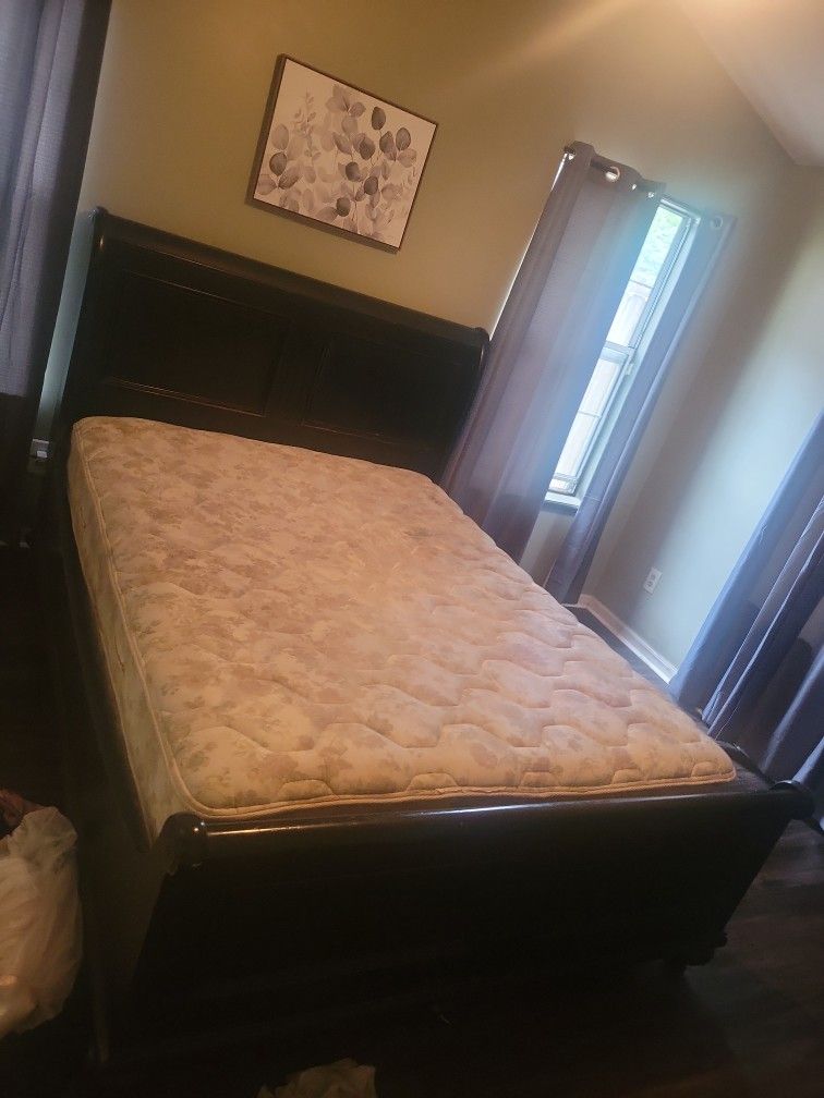 Selling the head board foot board mattress and box spring solid wood Ethan allan 550 for everything