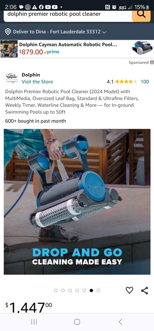 Top of the line robotic pool cleaner. I purchased this on Amazon about 8 months ago. Works amazing the filters are still in the box never used habe an extra set as well. I primarily use the leaf bag as I live where there are many trees. Moving pit of state and selling this at a huge discount. I purchased for 1500 8 months ago and selling today for 800. I can demo it for you so you feel comfortable. I'm in Hollywood fl. It also comes with a 50 foot cord for extra large pools. Call for any other questions (contact info removed)
