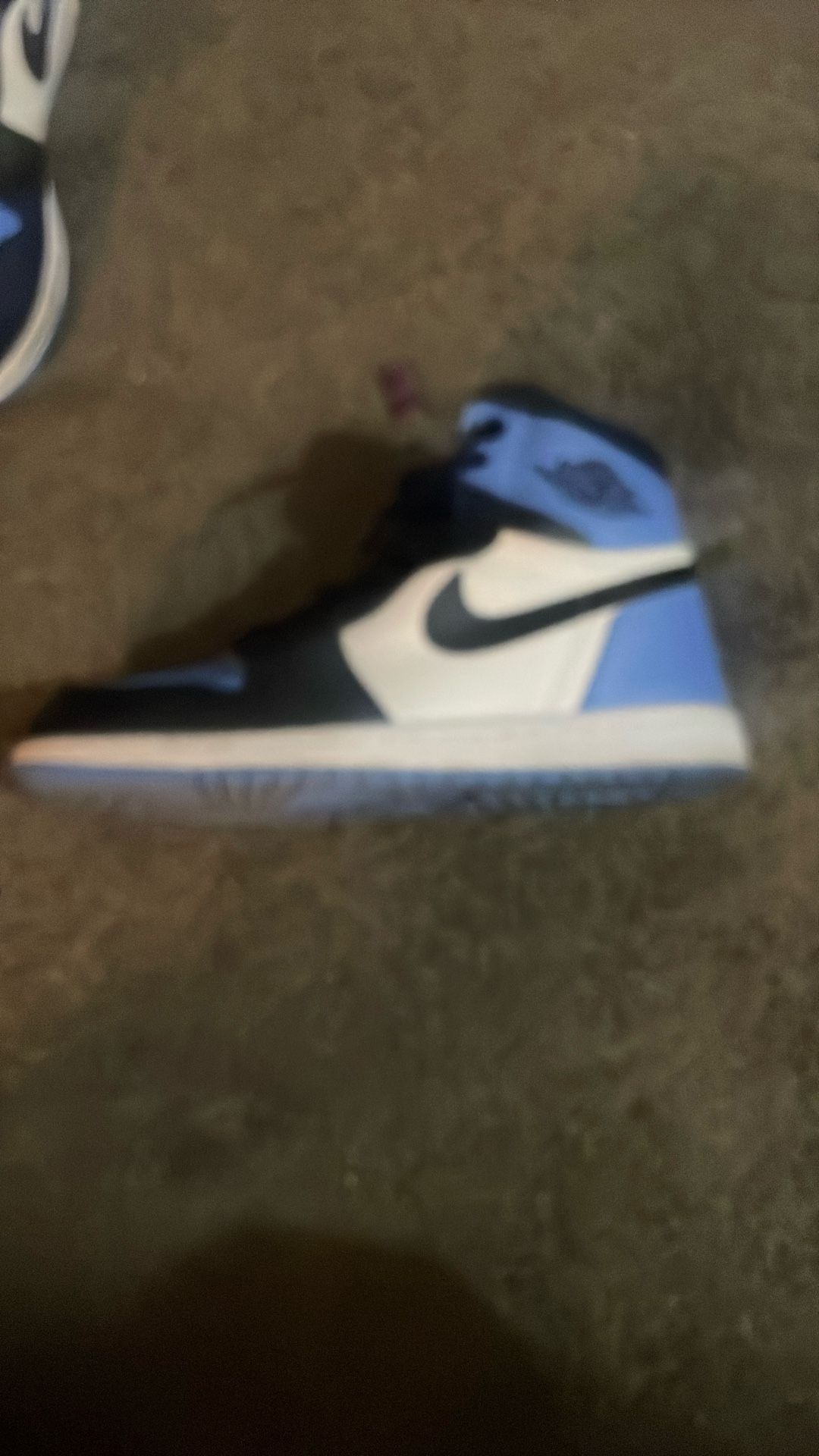 Size 9.5. These Jordan 1–style sneakers are in excellent condition, basically brand new and only worn once. Clean white, black, and UNC-blue colorway with no major creasing or flaws. Soles and uppers look great, and they’ll be fully cleaned before pickup. Price: $200 (willing to bargain).