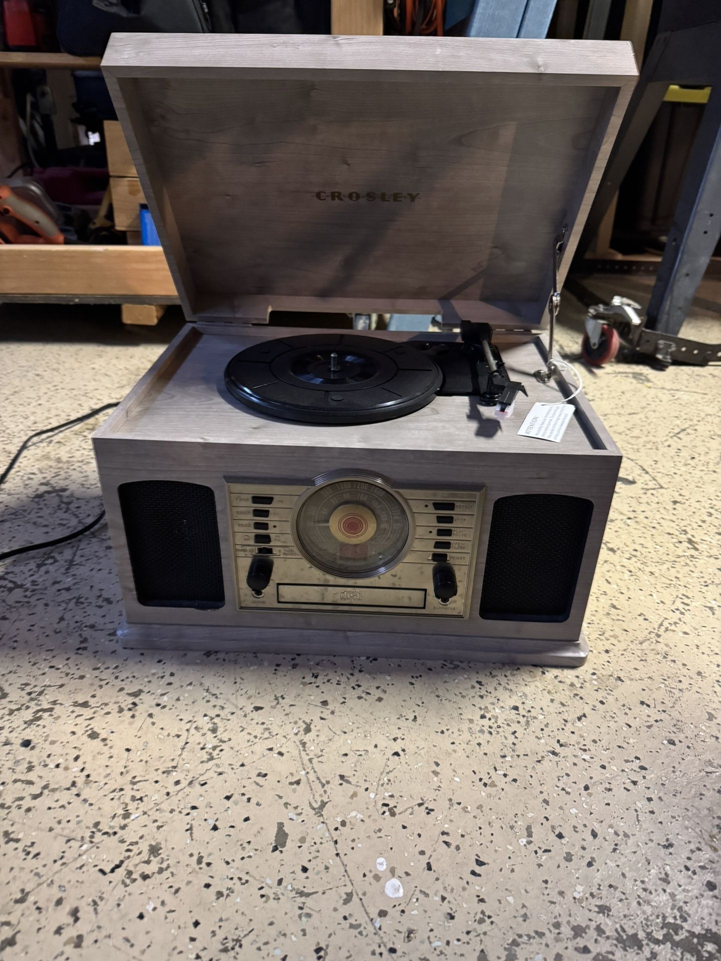Victrola Nostalgic 6-in-1 Bluetooth Record Player & Multimedia Center with Built-in Speakers - 3-Speed Turntable, CD & Cassette Player, AM/FM Radio | Wireless….it is brand new wife changed her mind about this gift we never tried to return to store they go for little over a $100.00 So $50.00 Great price for brand new wife didn’t like color