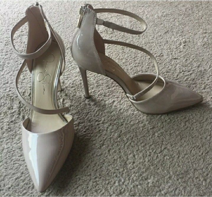 Womens Jessica Simpson JP-PIEPPER Strappy Pointed Heels- Nude, Size 9.5