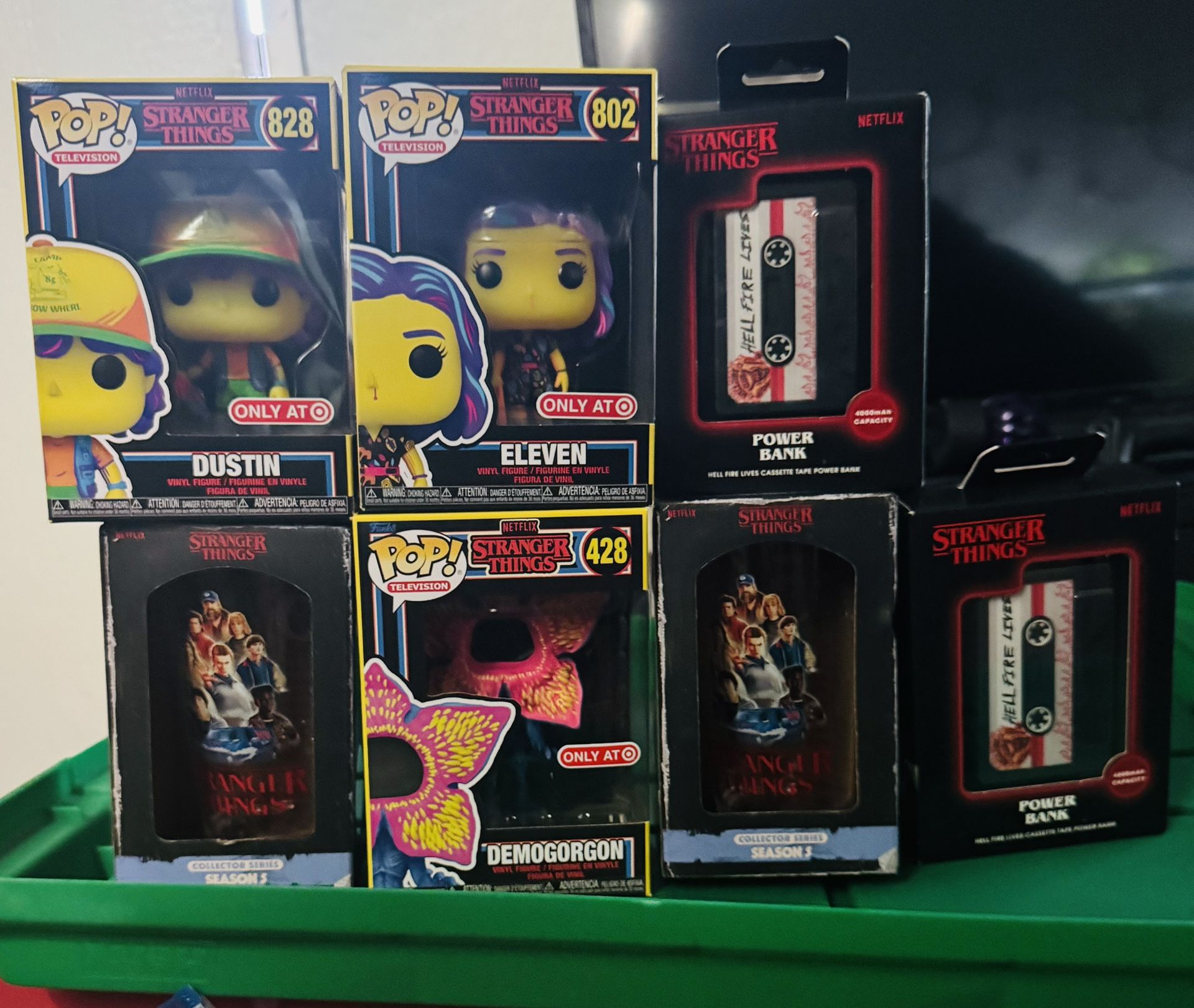Funkos $25 Power bank $50 Stranger things cups $25 Stranger things inflatable $50