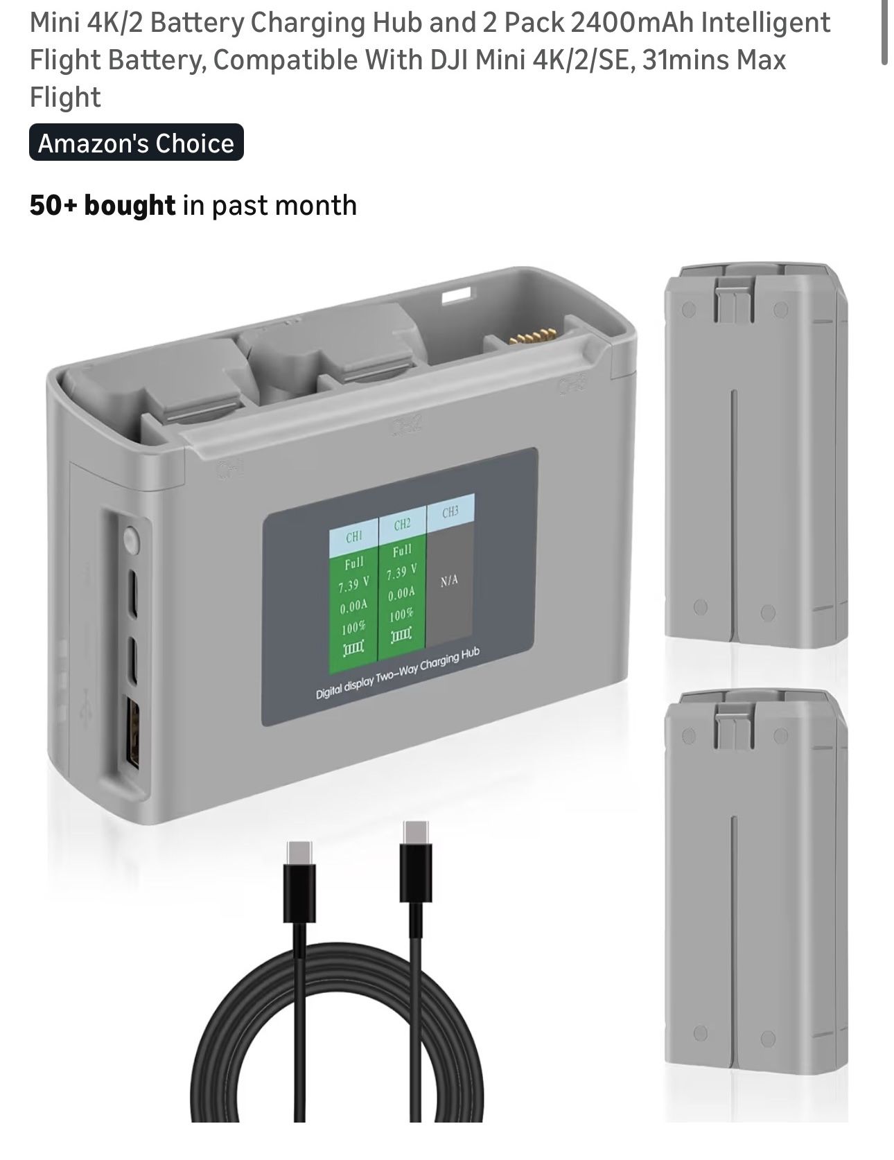 Mini 4K/2 Battery Charging Hub and 2 Pack 2400mAh Intelligent Flight Battery DJI