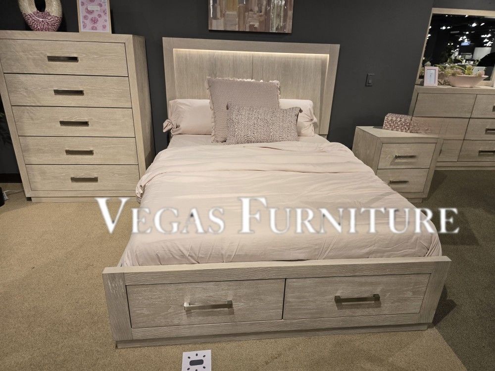 Bed, Dresser, Mirror, Nightstand