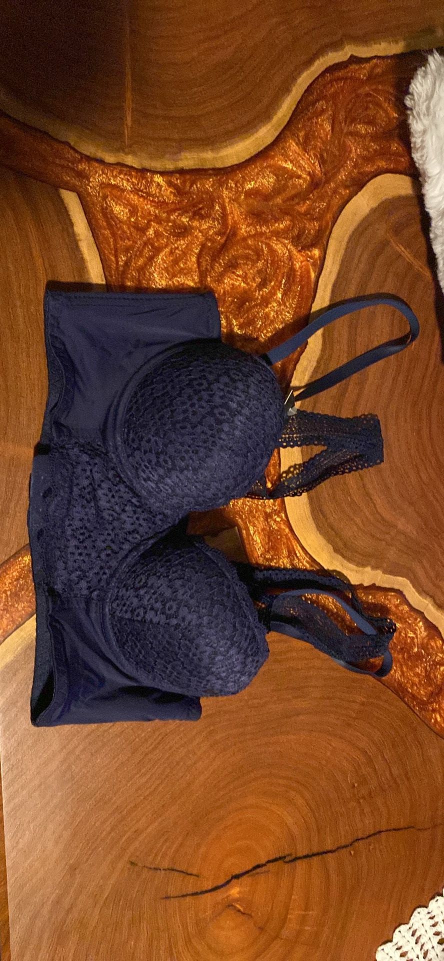Brand new navy blue Fredrick’s of Hollywood’s bralette in 34A double straps, one pretty lacy strap, and the other one is adjustable
