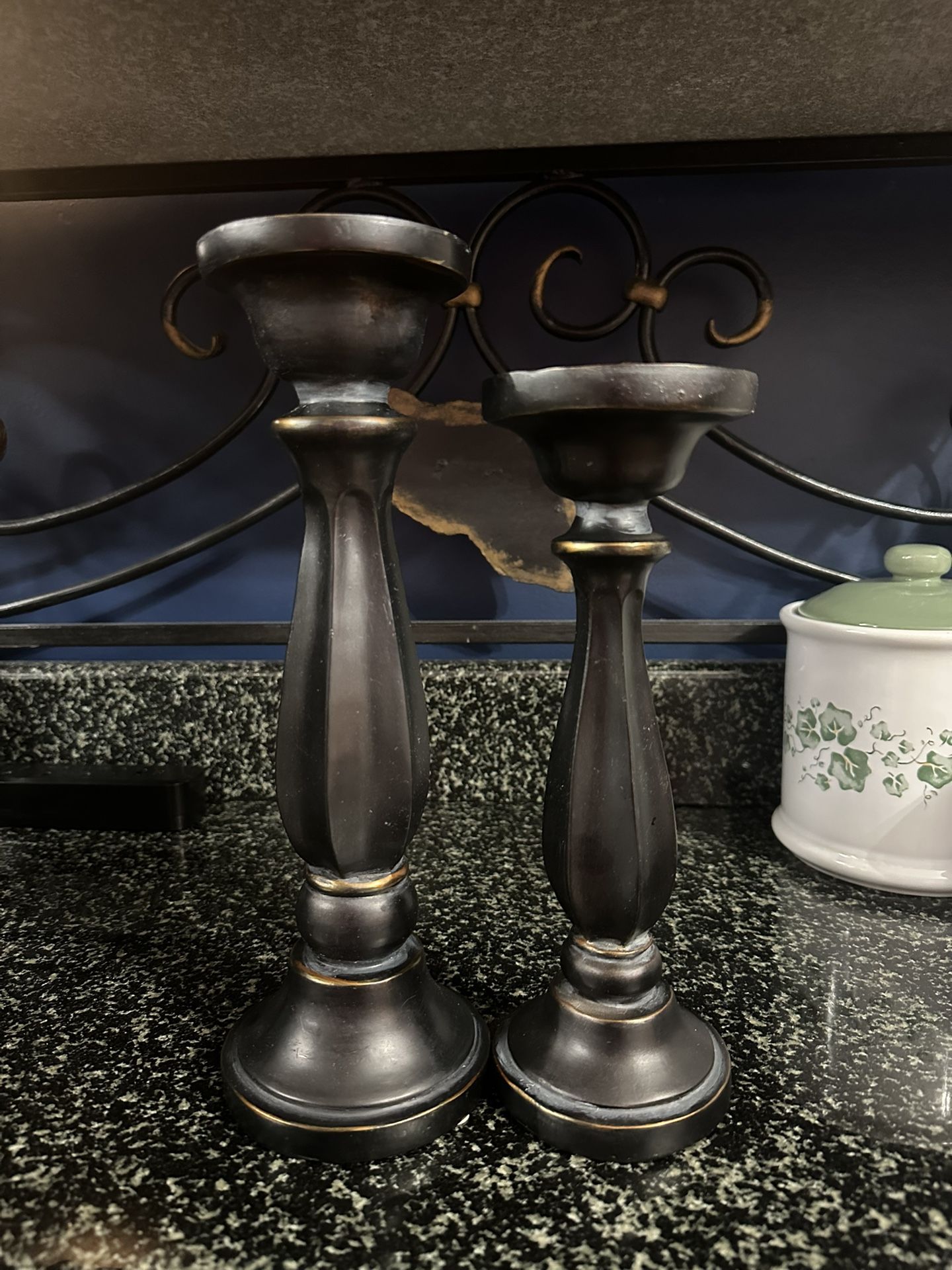 2 Ceramic Pillar Candle Holders, Dark Brown