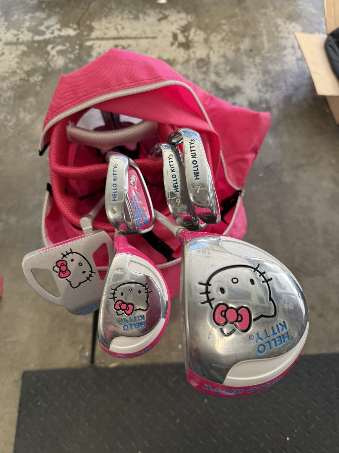 Lightly used, almost new. Driver, 4 hybrid, 7 iron, 9 iron, Sand wedge & putter plus stand bag. Covers for both driver & hybrid.