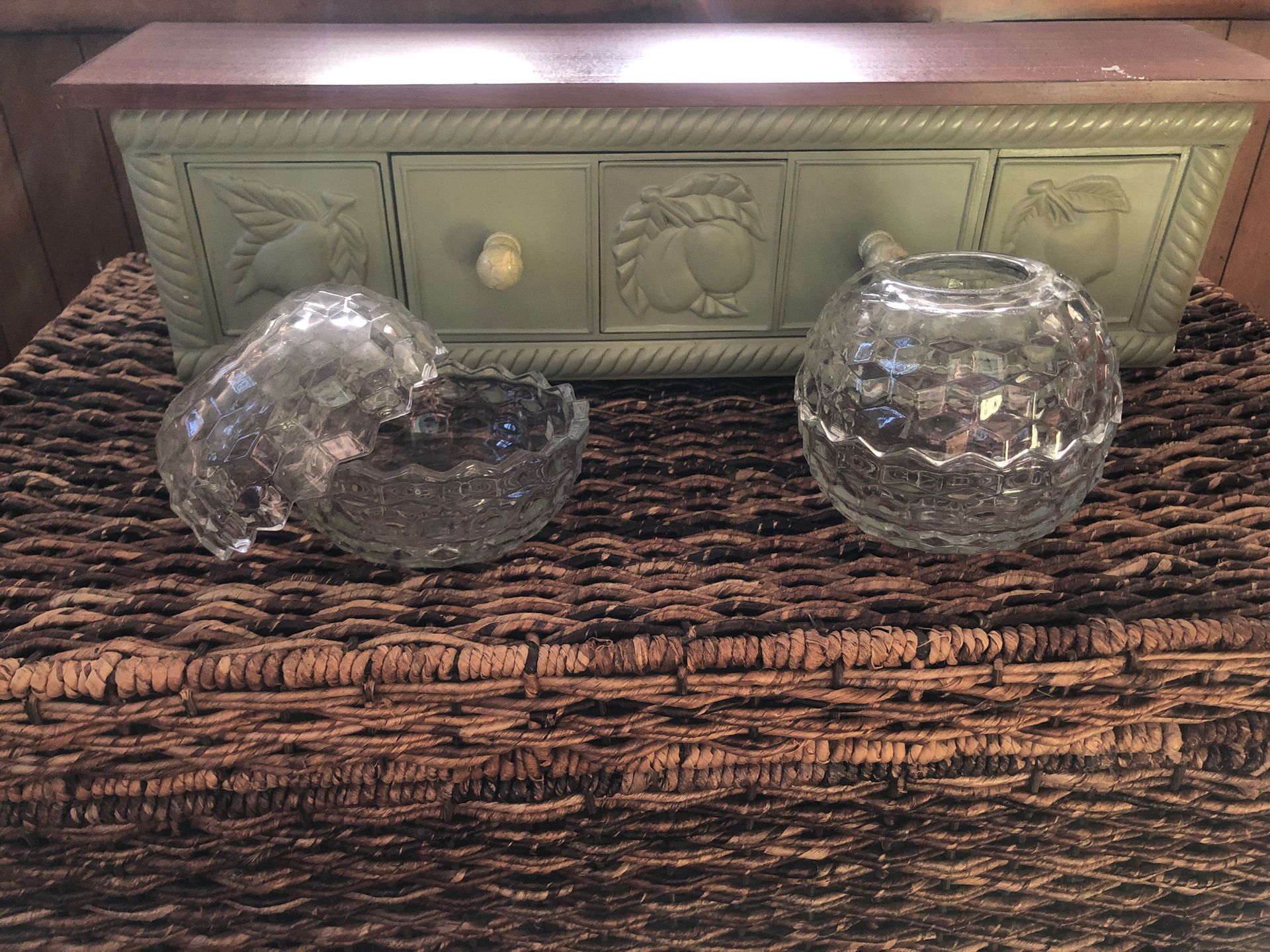 Two glass home interior candleholders. Can be separated and used for four pieces. Great shape, no chips, also has many uses other than holding candles, (ie.) candy dishes, fill with colored beads for Christmas, or can be used throughout the year with various decorations. Use your imagination. Pick up please, cash only, I am in the West Price Hill area. I am happy to give you a fair price if you want to bundle some of my items including Christmas items.