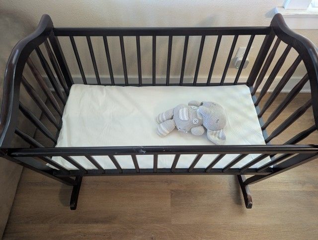Vintage looking wood baby cradle light weight. Our baby grew out of it in great condition.