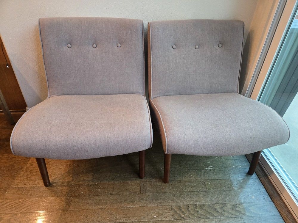 2 side chairs grey color. Good condition except for some sun discoloration on the back Dimensions 30hx 24.5w Pickup in zip code 92130
