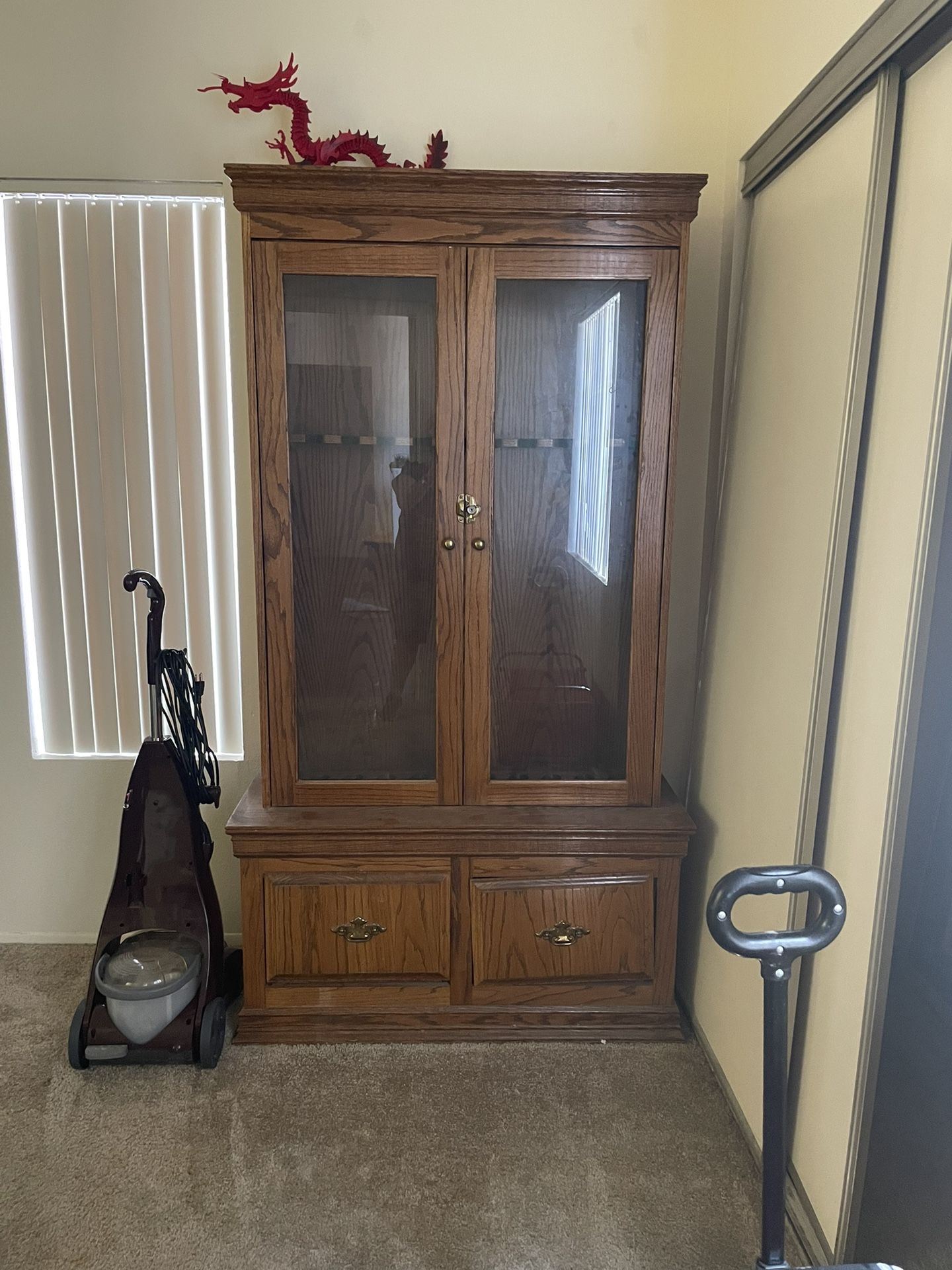 Solid oak gun cabinet with 2 drawer’s paid $250 asking $100.
