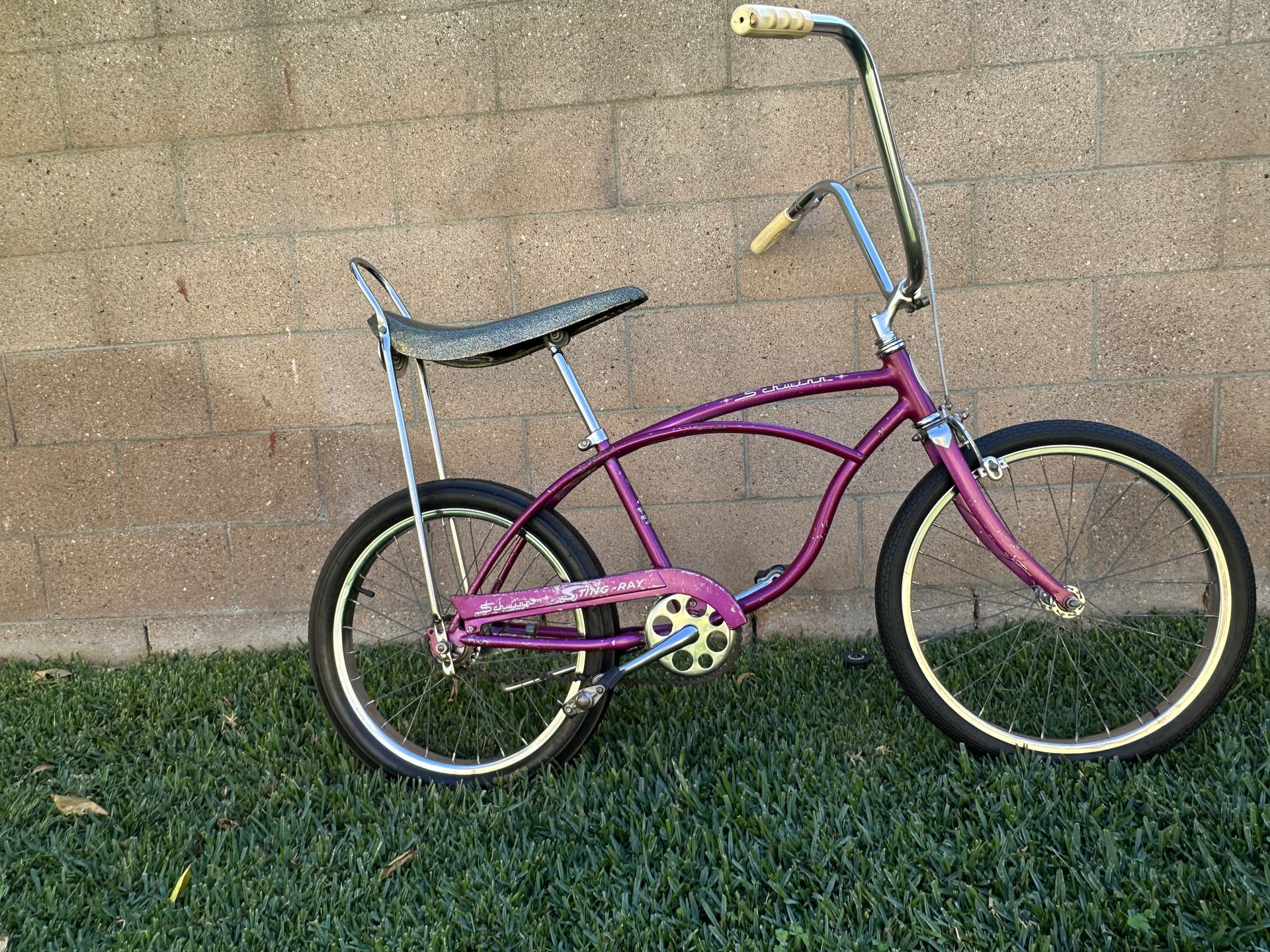1965 Schwinn stingray 2 speed with original dated yellow oval Slik and charcoal glitter smoothie seat!