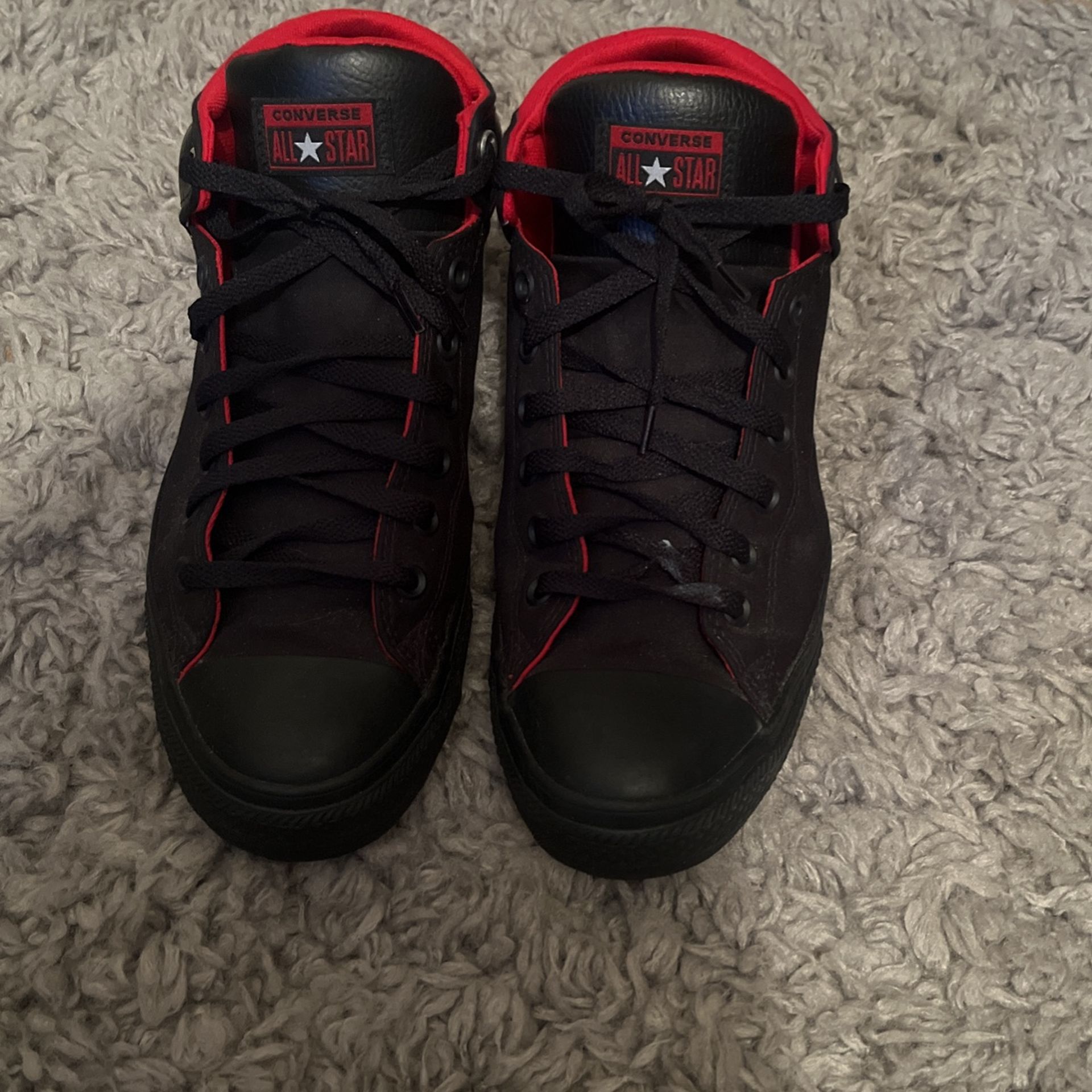 Red and black Converse High Tops