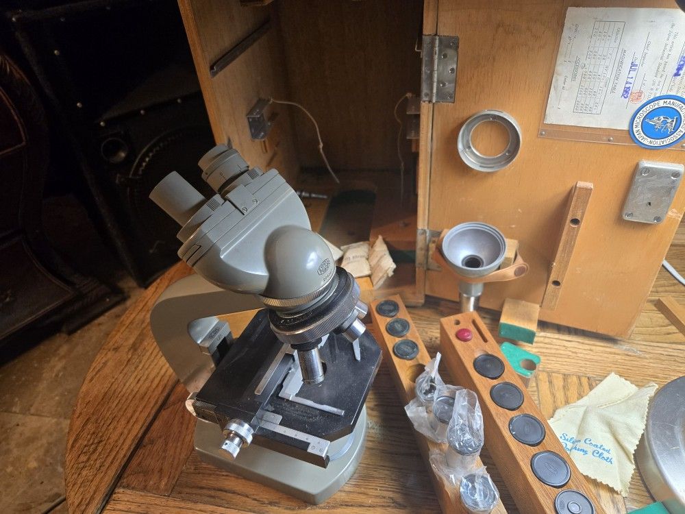 - Extra Monocular Attachment Included - Vintage 1962 - Original Certificate - 10x, 20x, 40x, 100x Objective - Custom Wooden Carrying Case