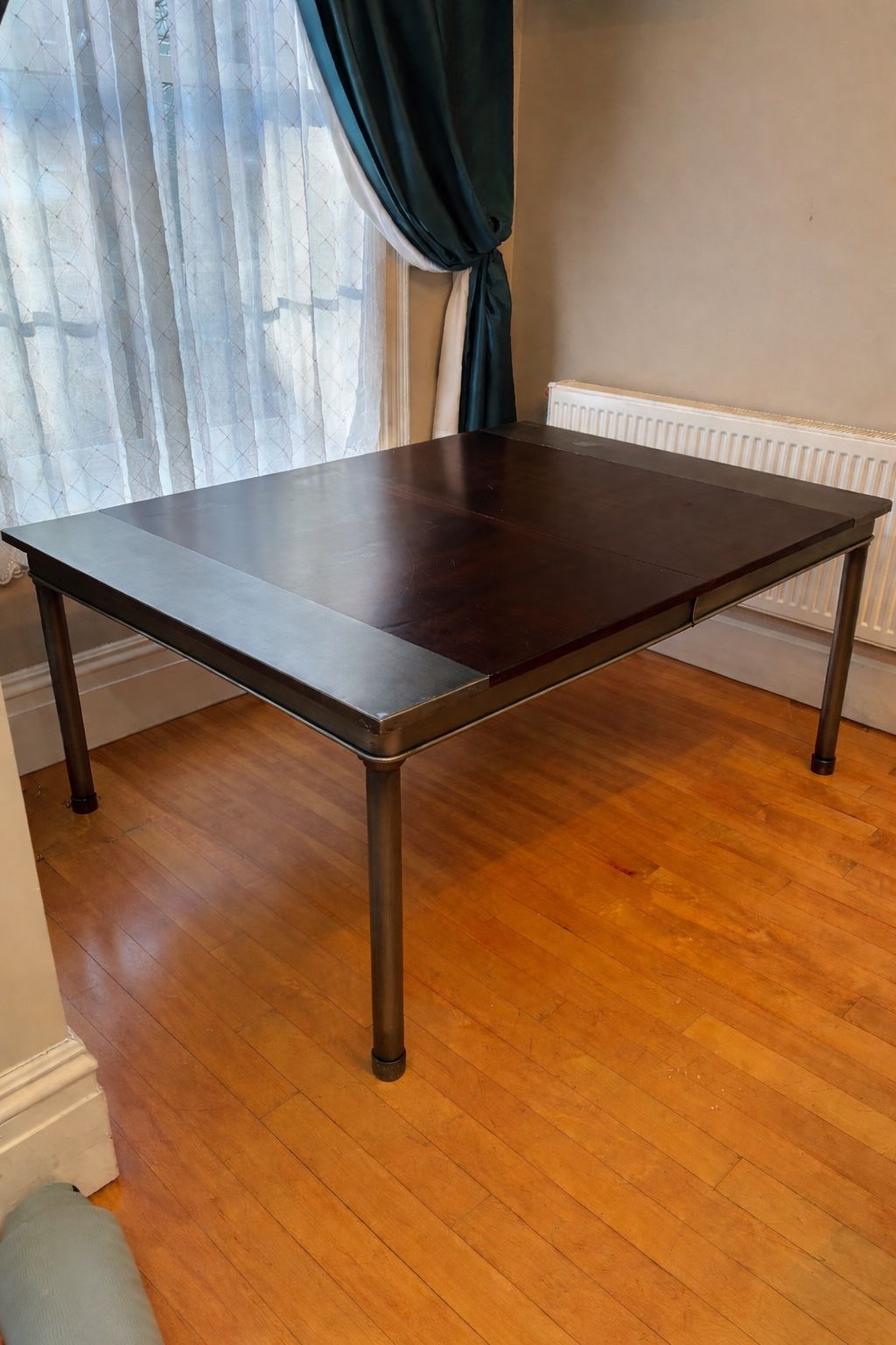 Very sleek, contemporary dining table w/extension leaf. $500 when new . Some minor scratches, wear and tear.