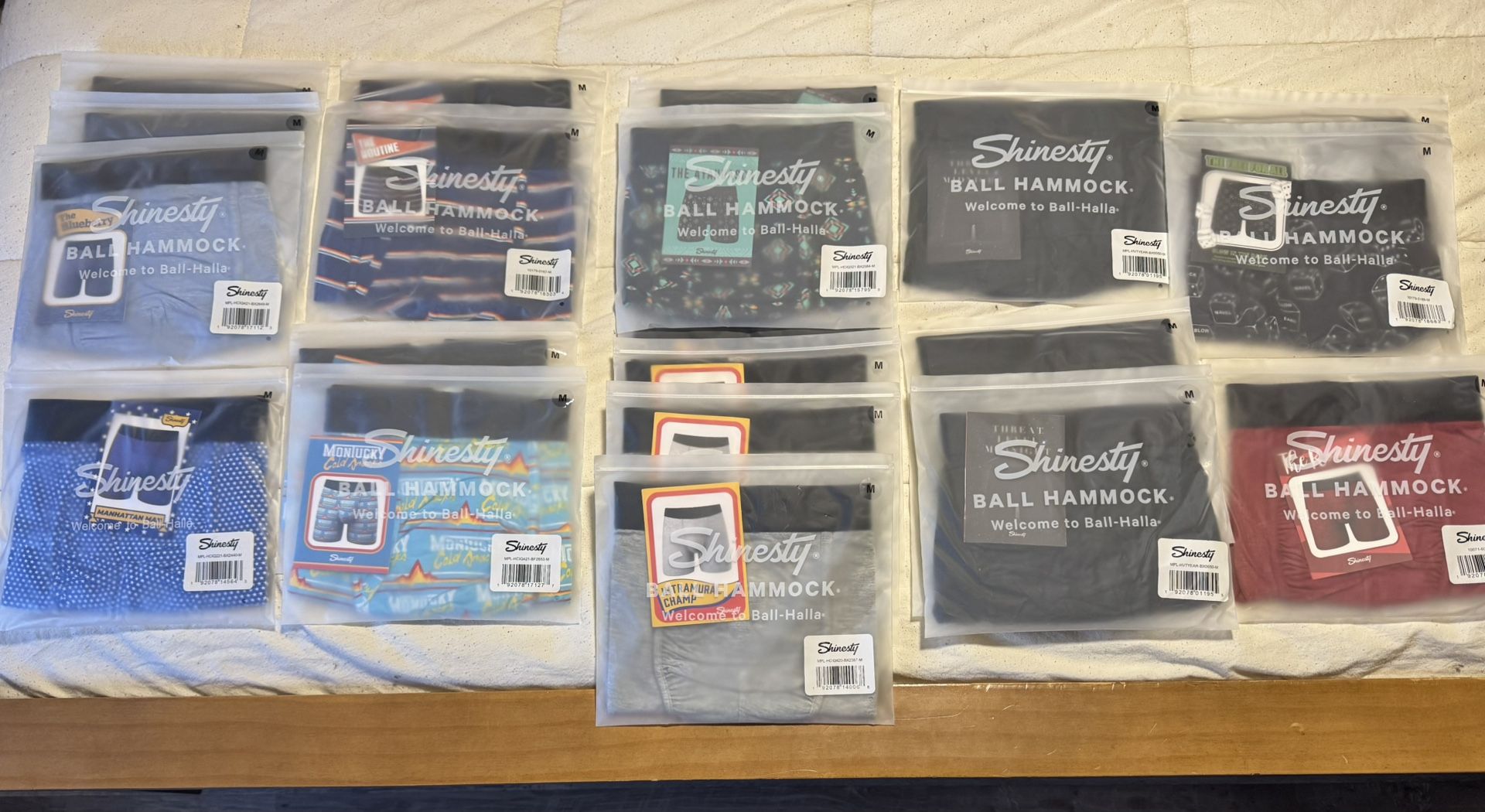Shinesty Men’s Underwear All new in original packaging Assorted colors ( some multiples ) Size Medium 20 total pairs, $12.50/ each if sold individually or $10/ pair if buying 10 or more.