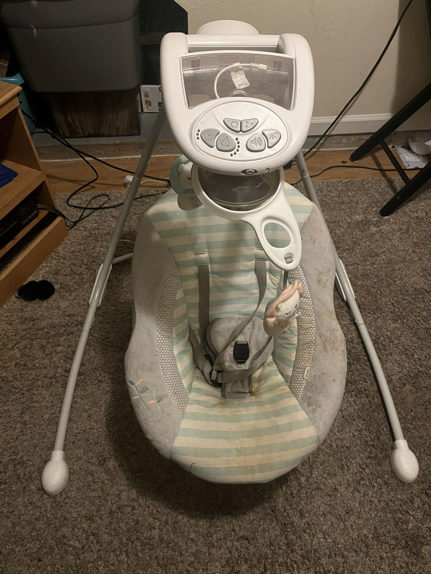 Seat cover is washed this is an old photo Has about 4 or 5 settings from slow to fast All the lights and everything works just needs batteries.