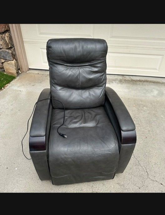 Seraphina Light Gray Genuine Leather Power Swivel Glider Rocker Recliner with Power Headrest Wooden Armrest and USB Port