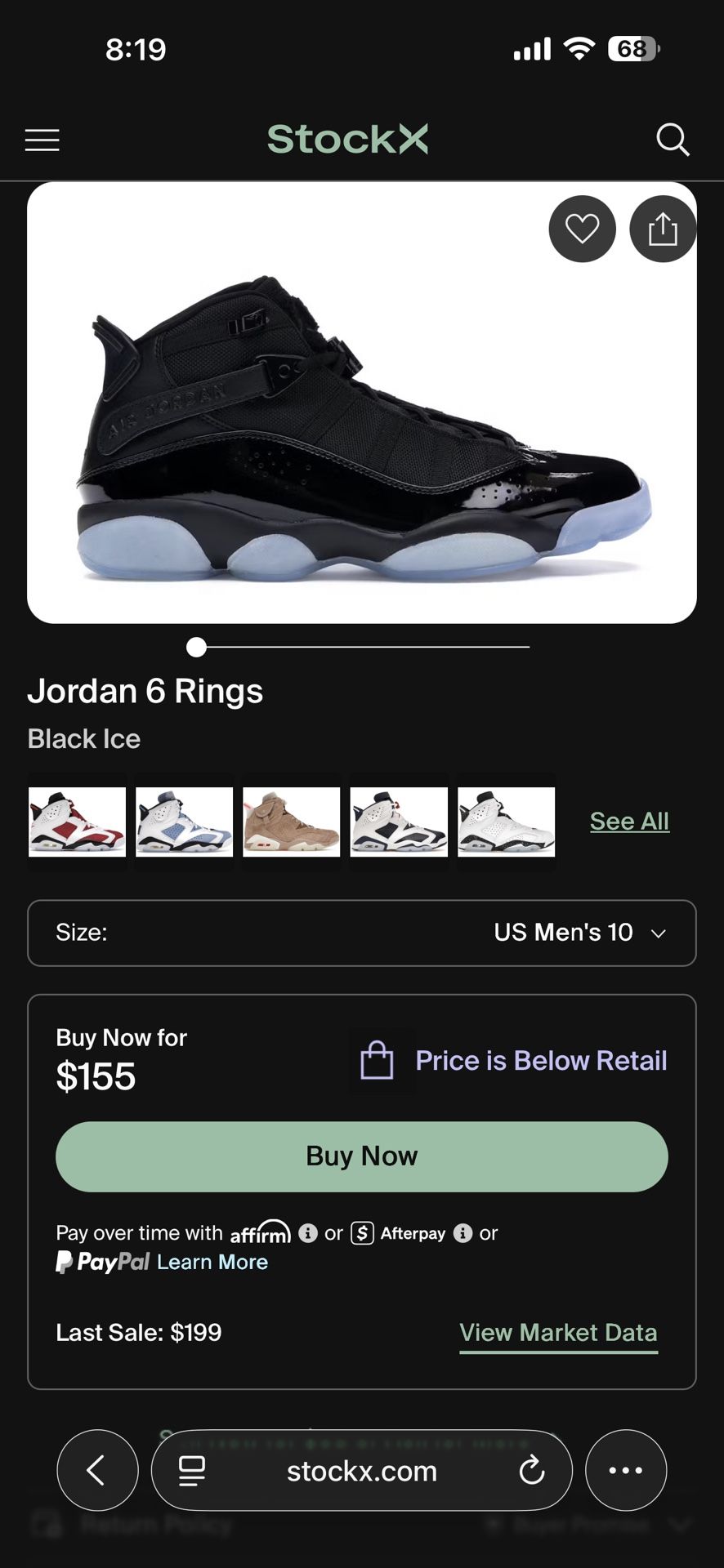 Jordan 6 Rings Black Ice Size 10 Wore a few times, then kept in storage but overall good condition Asking $60