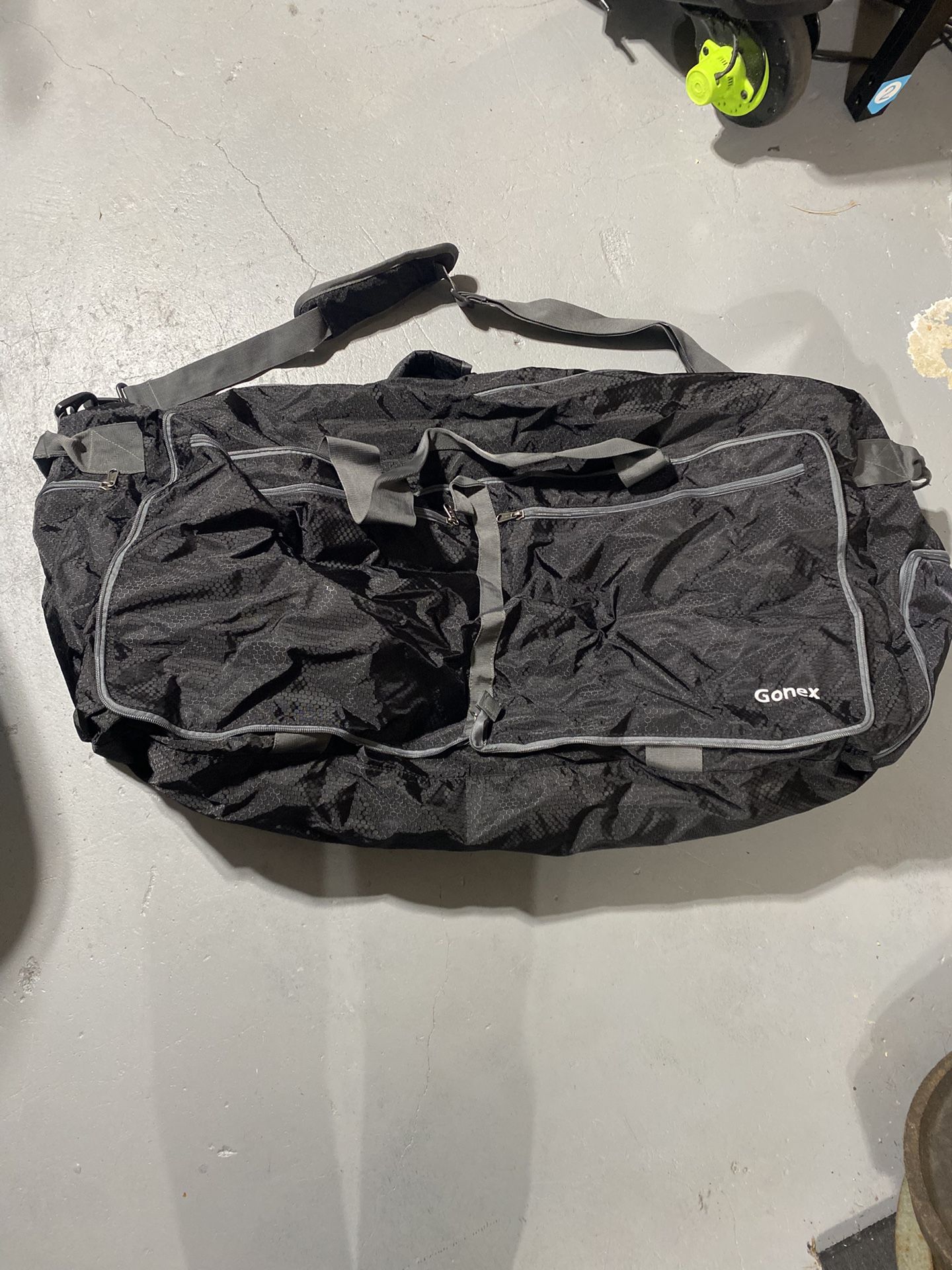 Gonex Extra-Large Lightweight Duffle Bag – New – Travel / Gym / Gear Price $25 Asking price is suggested — open to offers (OBO). Most similar extra-large Gonex duffle bags typically sell for $40–$60 new. Description Brand new Gonex extra-large lightweight duffle bag. Never used. This is a larger-capacity model designed for travel, gym, camping, sports, or hauling gear. Made from durable, water-resistant material and folds down compactly when not in use. Features include: • Extra-large main compartment • Wide zip opening for easy packing • Multiple zippered pockets for organization • Adjustable shoulder strap + carry handles • Lightweight but strong construction • Packs down small for storage Condition: New / unused Brand: Gonex Color: Black / dark gray Estimated dimensions: Approx. 28” L x 14” H x 14” W (extra-large duffel size)