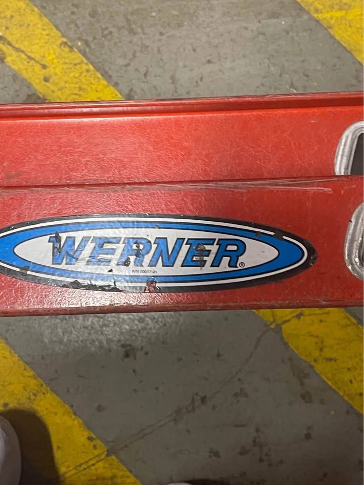 Used - Good Werner 24′ Fiberglass Extension Ladder (Model D6124-2) – Dual Section, 300 lb Duty Description: For sale: a heavy-duty **Werner 24 ft Fiberglass Extension Ladder, model D6124-2 (used condition). • 24-foot two-section extension ladder (approx reach 23′) • Fiberglass non-conductive rails (ideal for work near electrical) • Type IA / 300 lb load rating (check label for confirmation) • Slip-resistant D-rungs, dual-action feet, ALFLO® rung joint for twist-proof performance • Used, has signs of wear (paint stains, scuffs) but no major bends or cracked rails (per my inspection) • Works smoothly: extends/retracts properly, locks secure