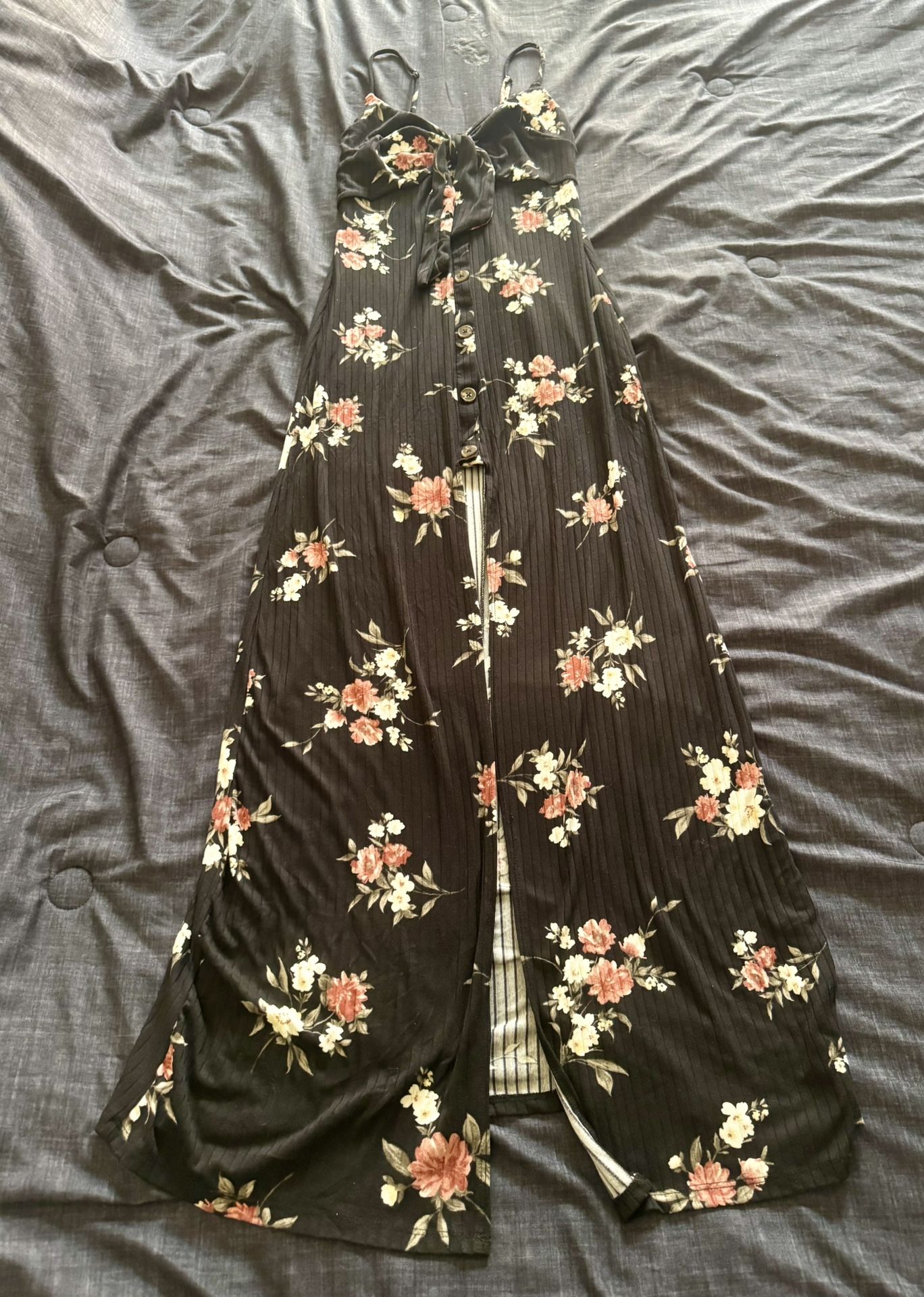 Floral Maxi Dress, Stretchy, open slit in the middle