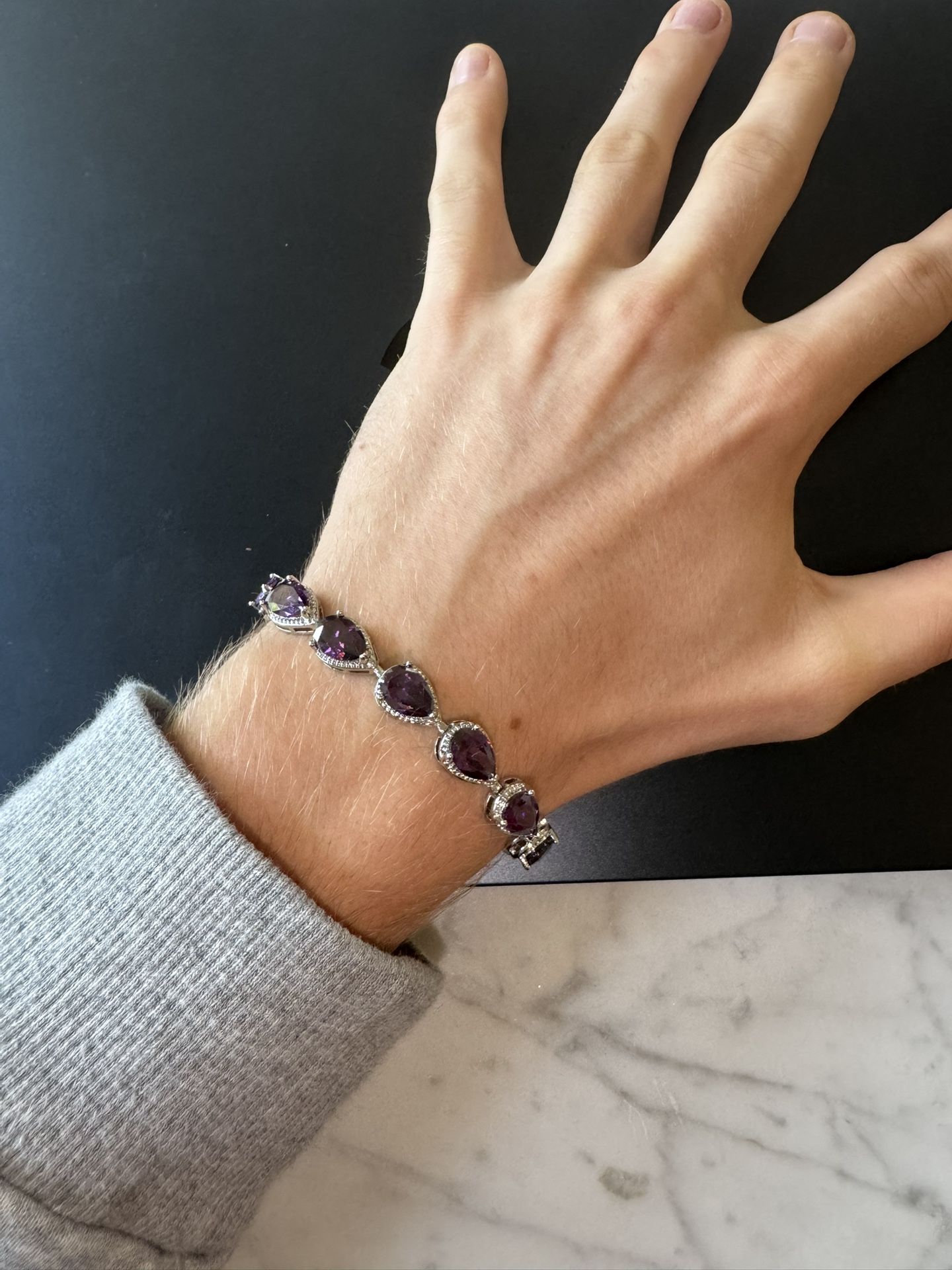 Silver and purple rhinestone gem bracelets Has a removable link so it can fit 7-8 inches Very high quality- shines when light hits it Other items like this available on my page Message with questions