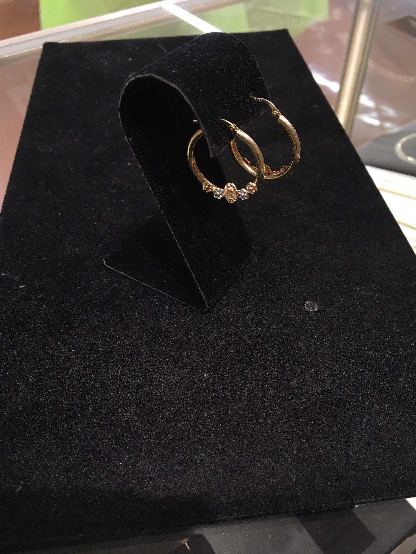 10k 3 Tone Hoop Earrings W/ Virgin Mary