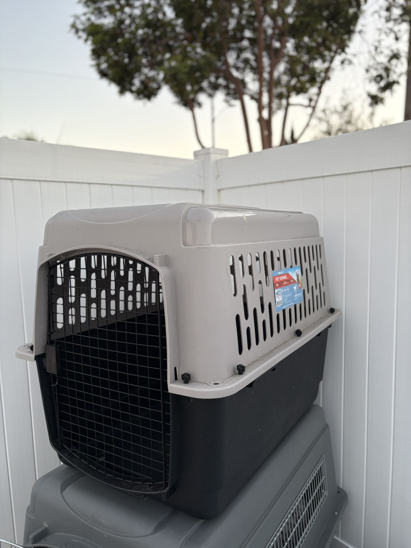 Dog kennel very gently used, not the right size for my dog, she used it less than a month. 50-70lbs dog