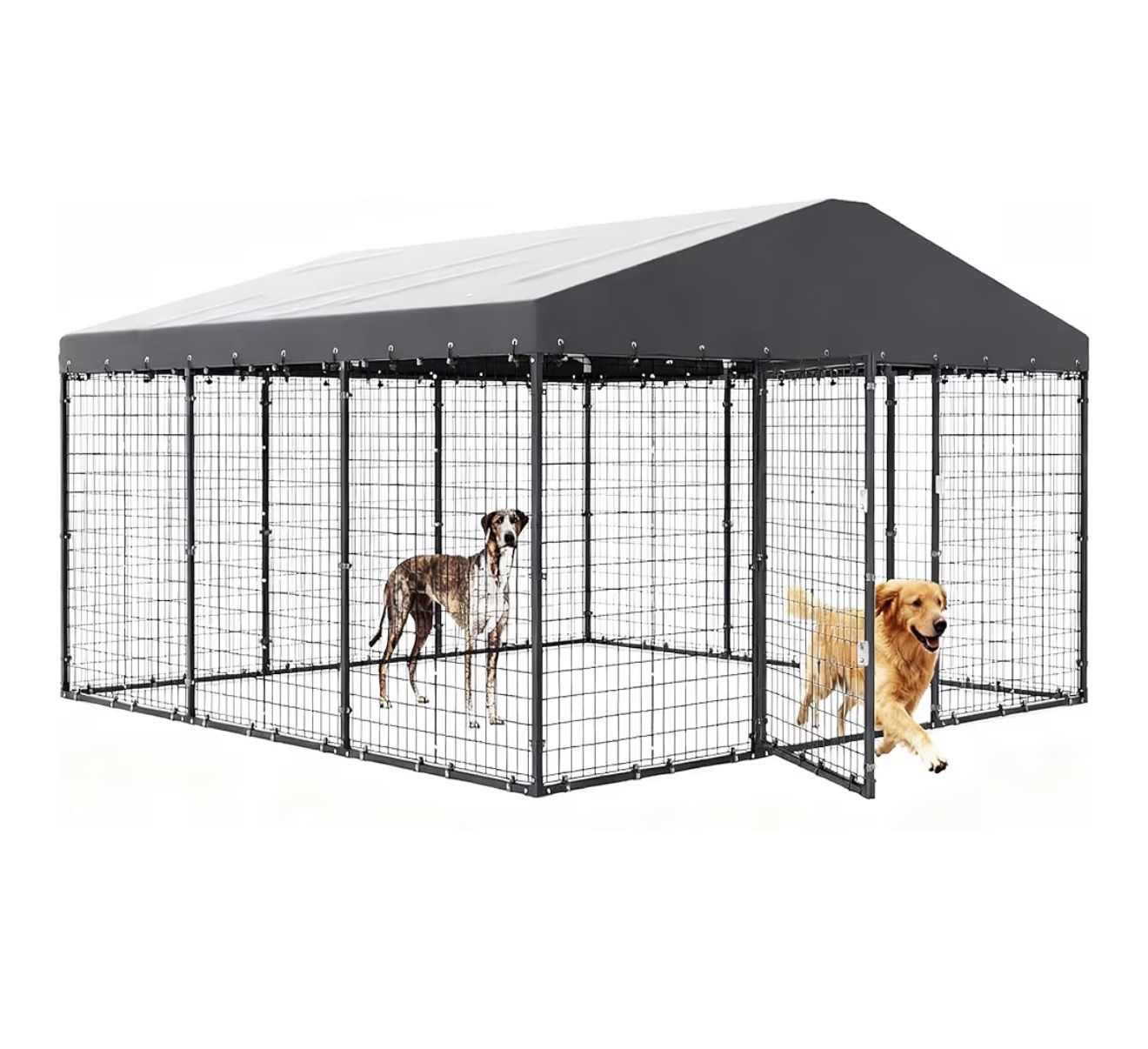 Dog Kennel Outdoor 10 x10 x6 FT, Dog Cage Outdoor for Medium/Large Dogs with Waterproof Roof Double Secure Locks Ground Spikes, All Weather Heavy Duty