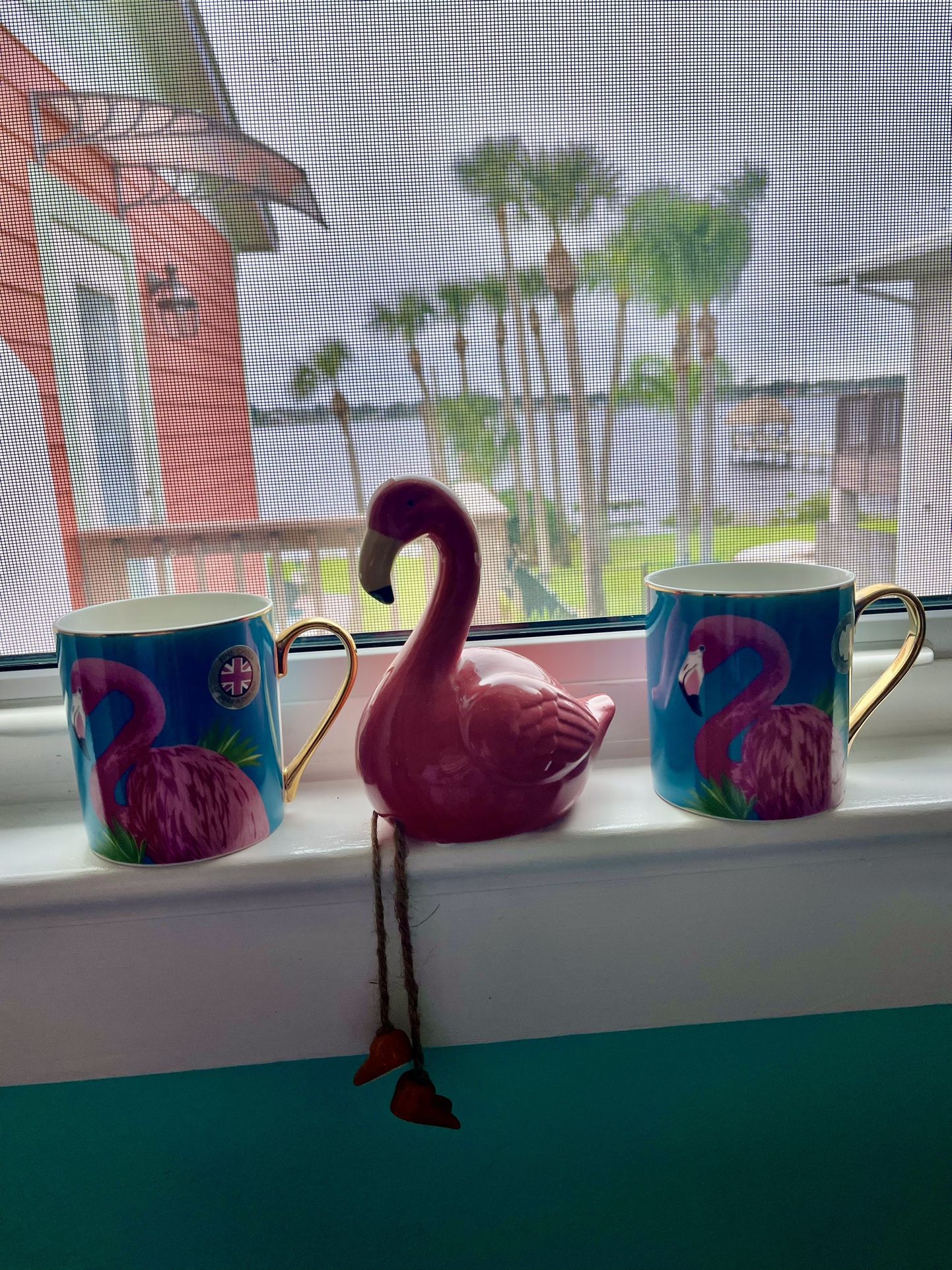 2 flamingo cups with gold handles 2/6 1/ceramic flamingo / dangling legs 5