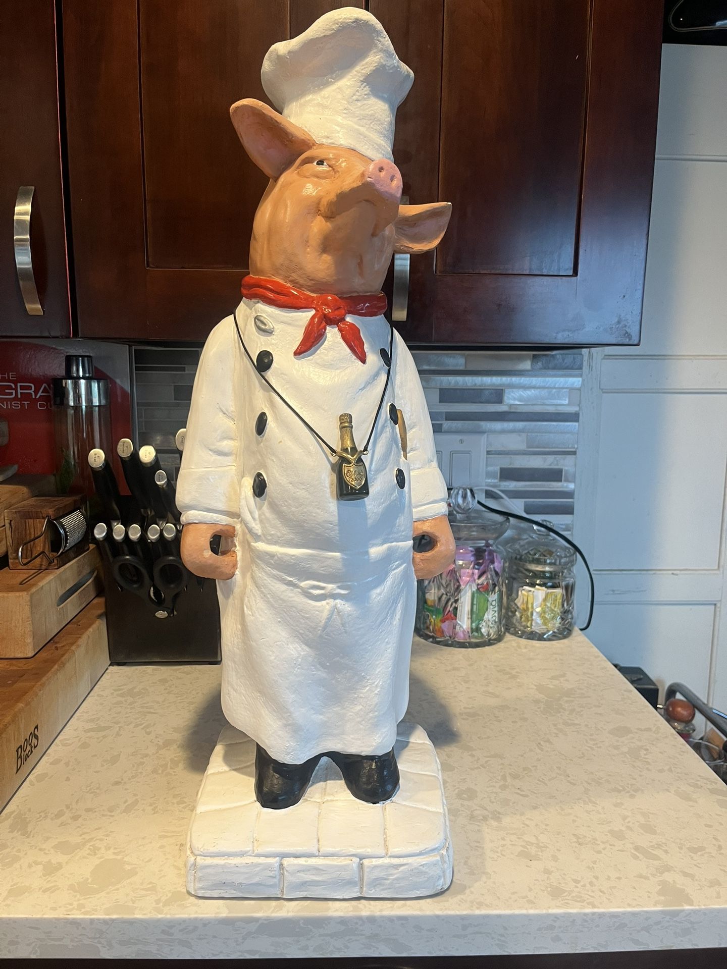 Vintage French Chef Pig Statue Over 2ft Tall