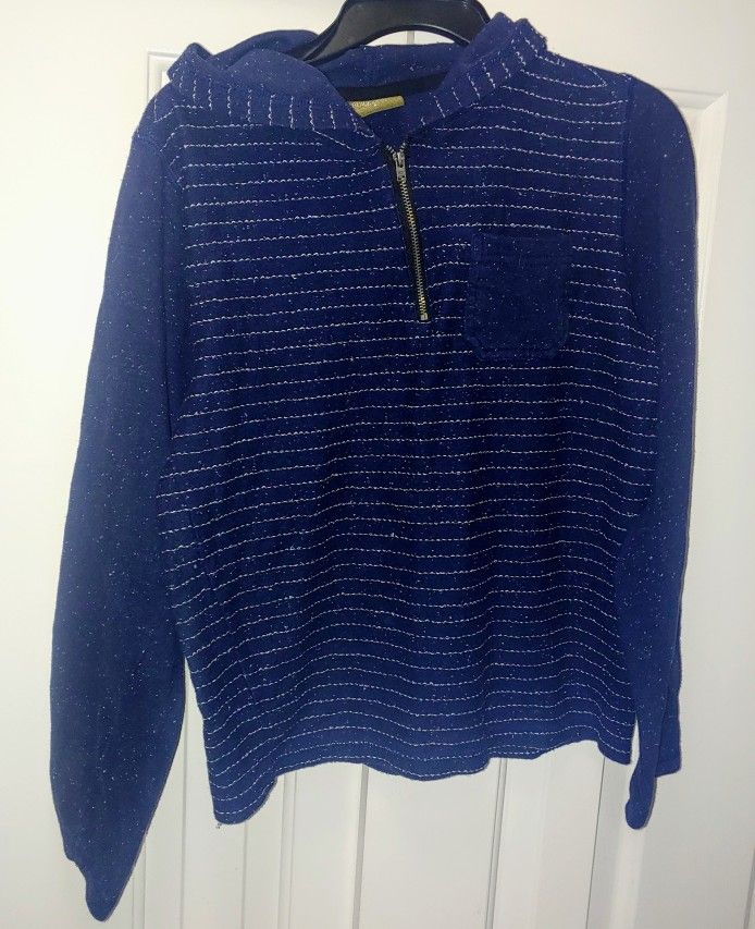 Boys Blue And White Sweater Hoodie Size 8 Bus Cuts