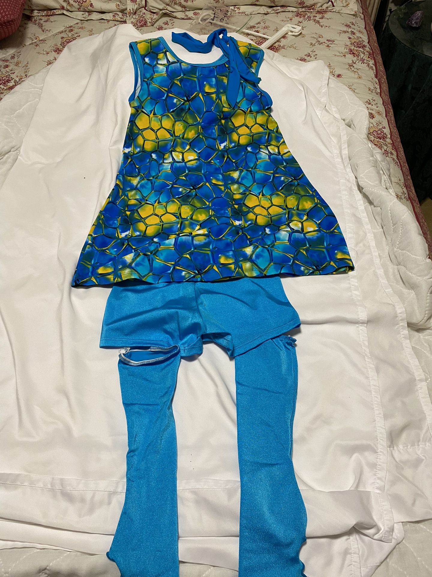 Girls 60’s tunic costume complete with shorts, boot-look socks , and hair band. Very