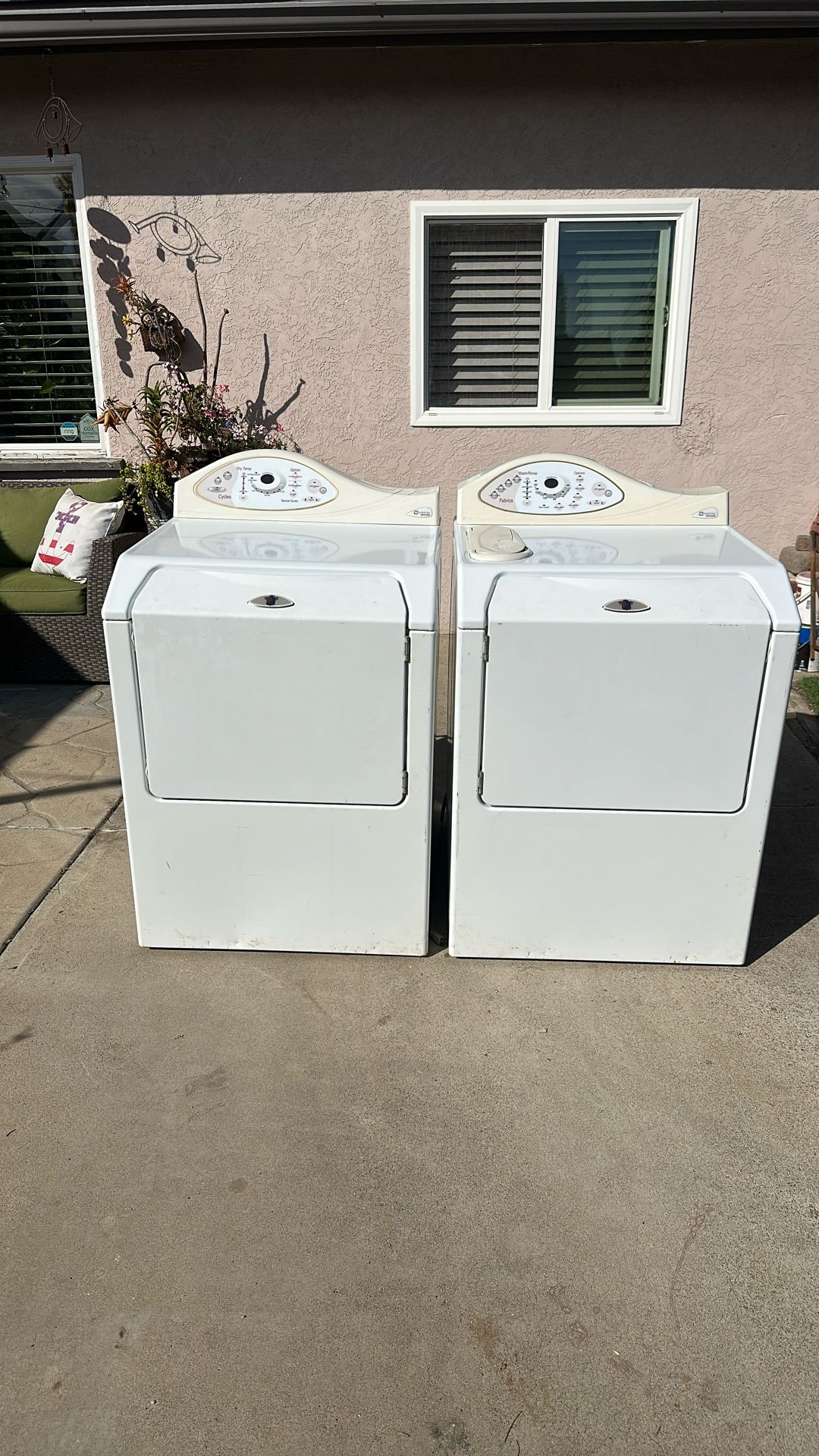 Capacity: The models typically feature a large or "king size" capacity for handling substantial loads of laundry. Controls: Depending on the specific model, they may have digital, auto-dry controls, or touchscreen systems with various cycle options. Features: Common features include "Quiet Pack" operation, wrinkle prevention settings, and various temperature options. Type: Both side-by-side and front-load configurations were available. Model Numbers: Specific models have identifiers like MAH7500AWW (washer) and MDE7500AYW (dryer).