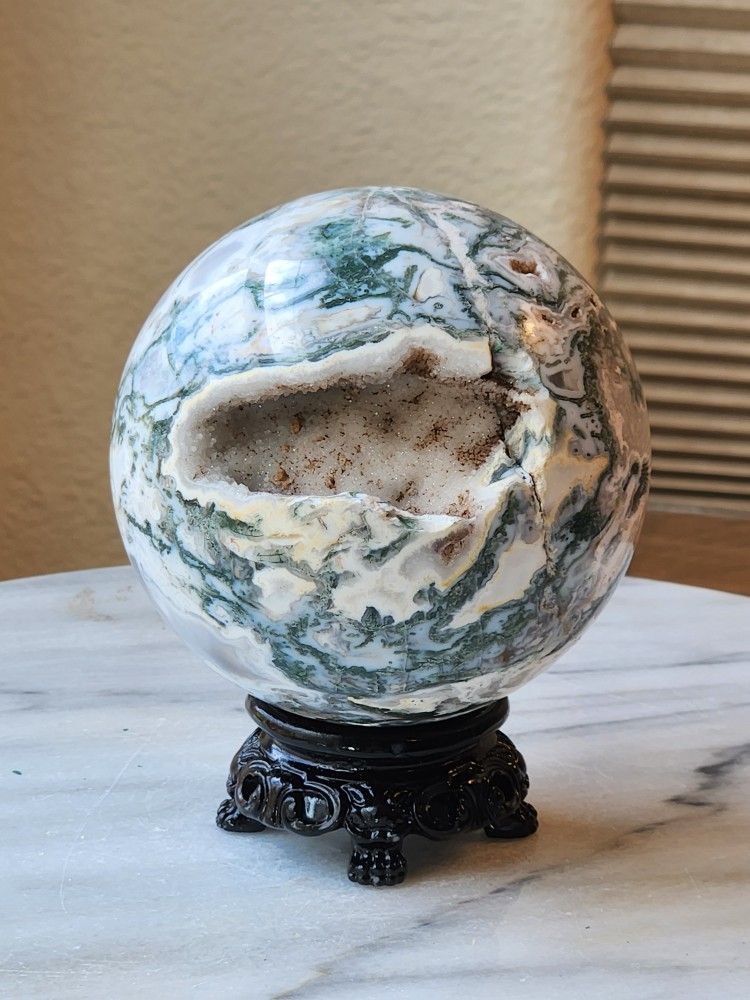 1.7 Lb (755g) Druzy Moss Agate Sphere Quartz Crystal