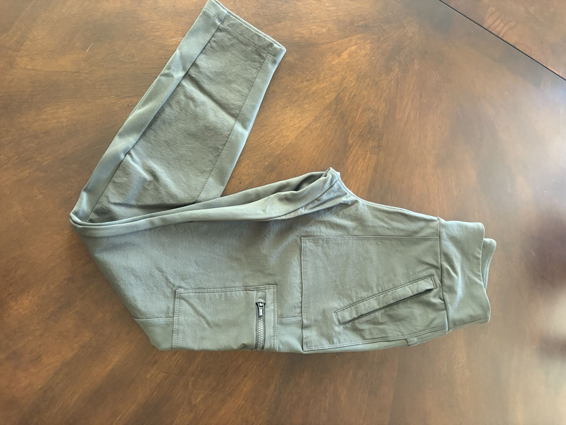 These are super cute. They say size small although they seem like an extra small however that may be because they are meant to be for fitting so they make the waste dinner and the rear end pop. They are a cargo type green and super cute new without tags.