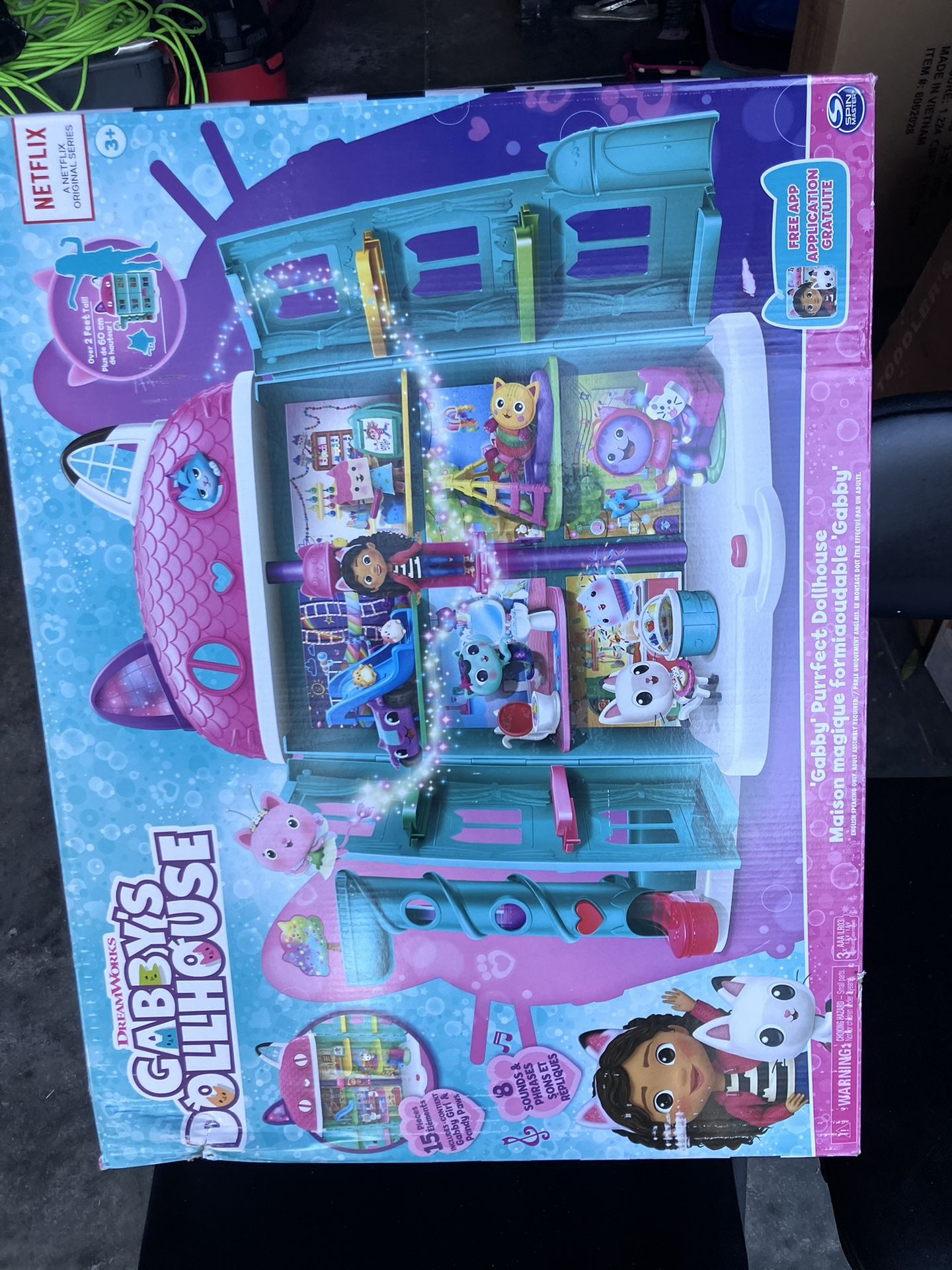 I have three of these dollhouses they’re all new. However, the boxes all have variations of damages posted the pictures let me know $20 each. Description OVER 2 FEET TALL: With its cat-inspired shape and colorful details, Gabby’s Purrfect Dollhouse looks just like the one from the show. It’s the ultimate setting for your exciting pretend play adventures! ELEVATOR AND DELIVERY TOWER: Play on 4 floors and explore 7 different rooms! Drop deliveries in the tower, ride the Cat-A-Vator to each floor, discover hidden surprises on the room backdrops and more! 15 PIECES: Play right out of the box with Gabby and Pandy Paws, 2 Dollhouse Deliveries, 3 accessories and 8 furniture pieces, including a couch, slide, table that flips from breakfast to dinner and more! Battery: 3 AAA Alkaline, Required, Not Included