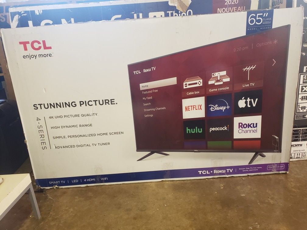 Tv TCL Roku 65", 4k, Free Wall Mount, Google, Excellent