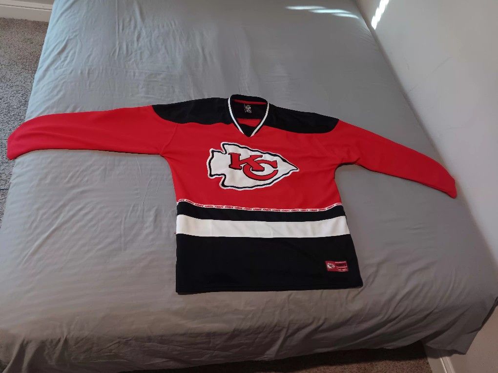 Kansas City Chiefs hockey-style jersey . Red and black colorway, big bold Chiefs logo across the front, and good quality material. No stains, no rips, no damage kept clean. Perfect for game days. Men Size Medium.