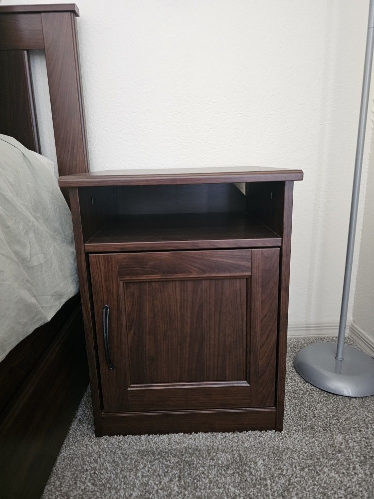 For sale: Very lightly used IKEA SONGESAND nigth stand, Brown. I built it with right opening cabinet, it can be reversed. Dimensions: 16½ × 15¾ × 21⅝ in (w×d×h)