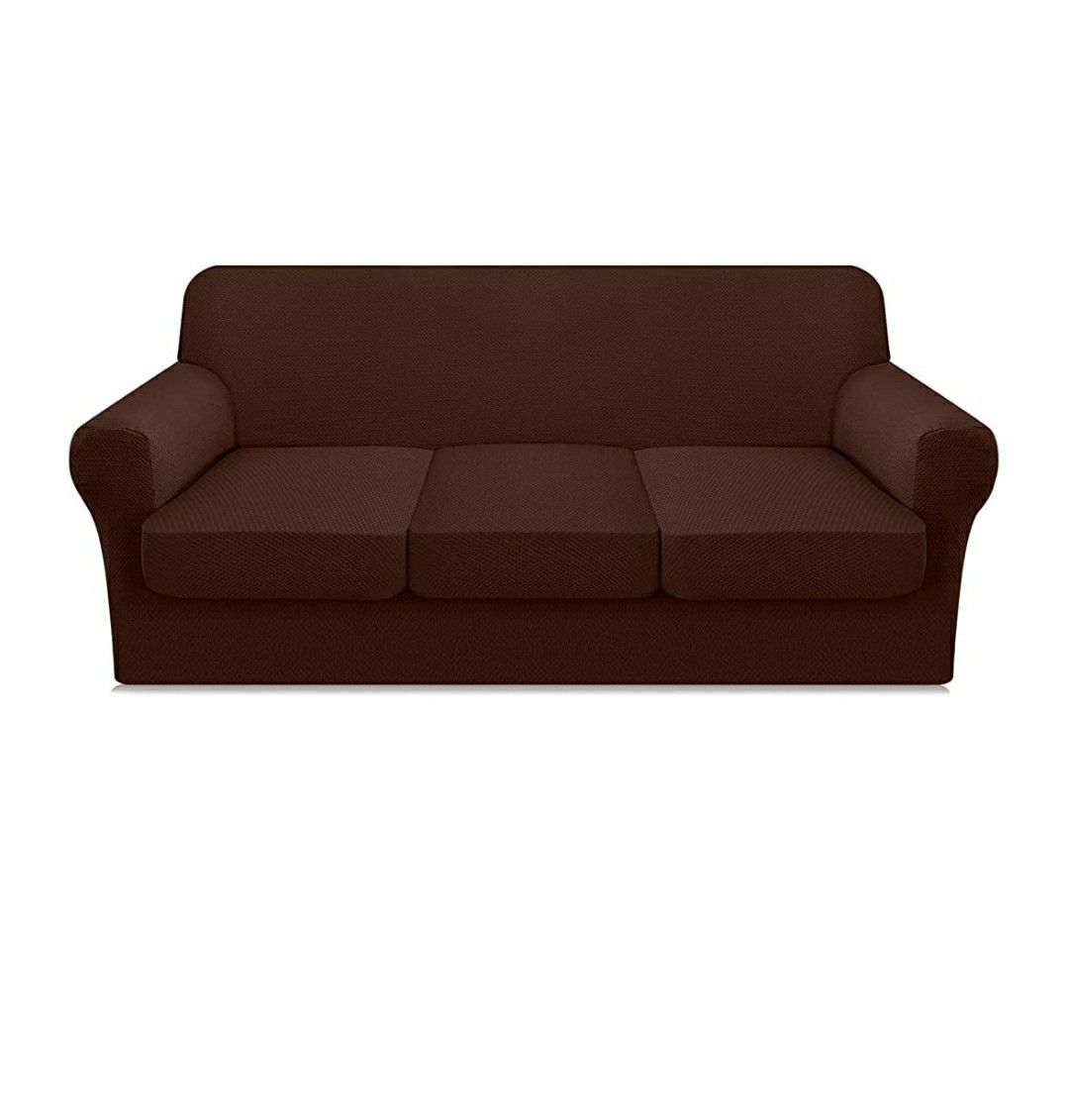 4 Piece Stretch Couch Cover for 3 Cushion Couch Thick Premium Sofa Slipcover with Individual Cushion Covers Customized 3 Seater Sofa Cover Dog Pet Proof (Large, Chocolate) 0-44-4623