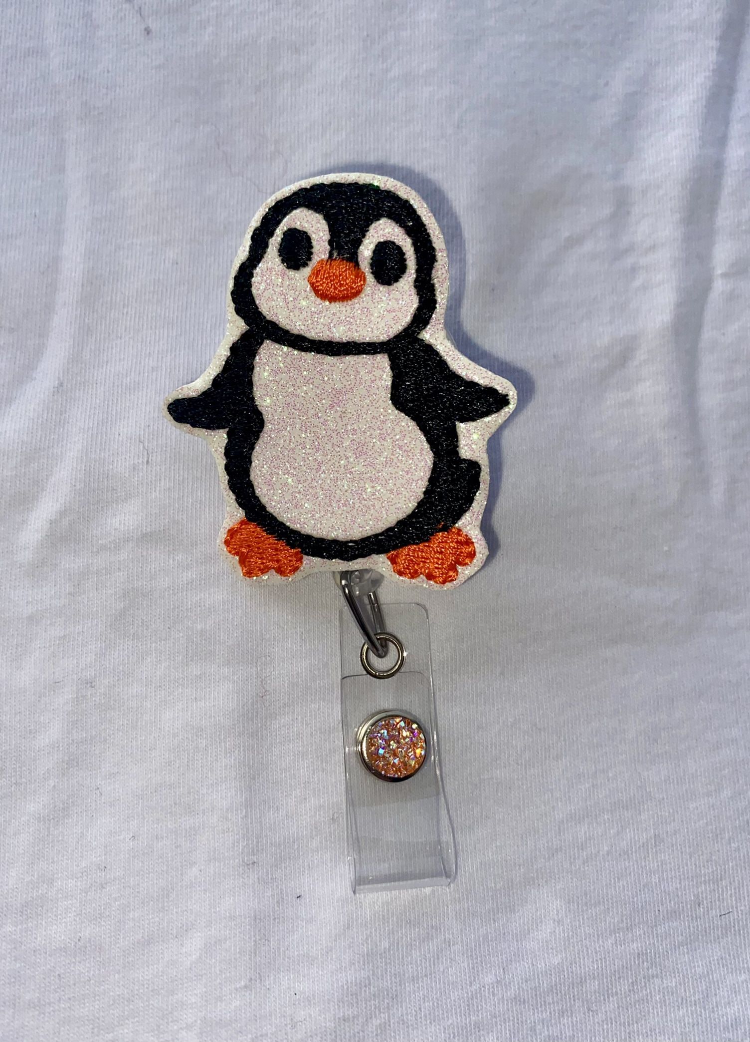 Felt badge reel. Penguin. Alligator clip. Homemade.