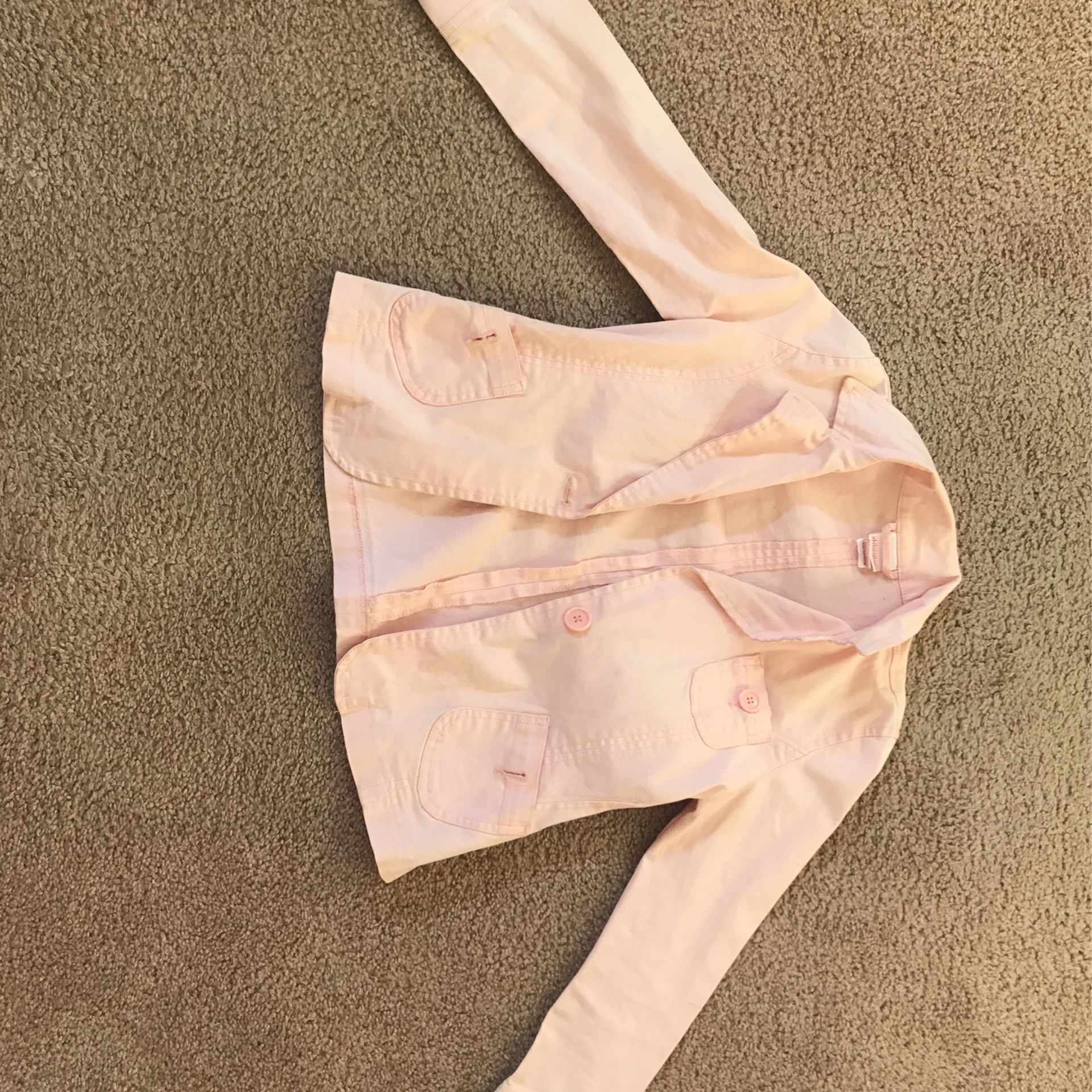 This is a pink Jean jacket, this Jean jacket is large in kids.