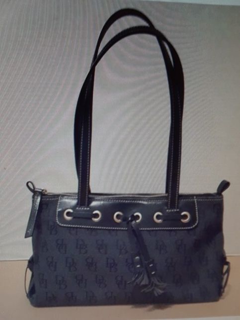 Monogram MEDIUM shoulder bag.gray and black. Leather trim and tassels. Never used. 12" X 7". Plus 9" strap drop.