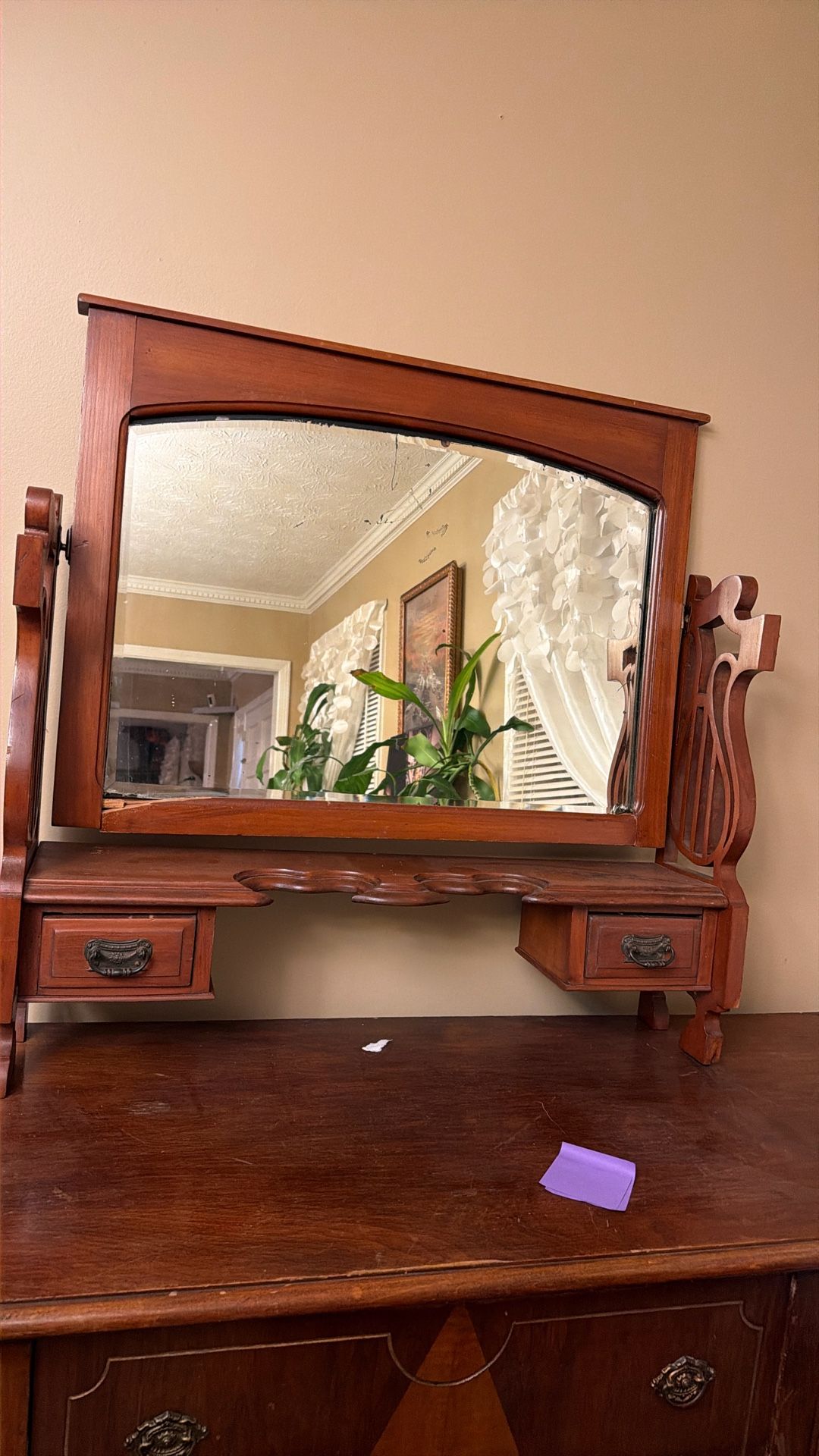 This is a vintage solid cherry traditional style dresser or wall mirror.